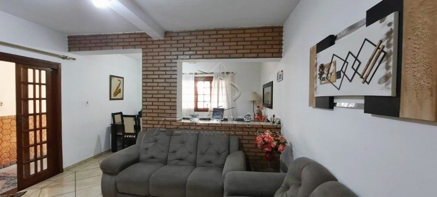 Sobrado: Fachada: Calçada com piso Miracema, portão de ferro manual com sacada e acabamento superior com pedras e janelas em madeira. Térreo: Garagem para 2 carros cobertos com piso cerâmico, sala 2 ambientes, 1 banheiro social, cozinha ampla, lavanderia coberta, e quintal superior com corredor lateral, escada em piso cerâmico para acesso ao andar superior com corrimão de ferro. Andar superior: 3 dormitórios sendo 1 suíte com espaço para closet, 1 sala de TV, 1 banheiro social, sacada coberta e corredor. Acabamento interno: Todos os cômodos com piso cerâmico, janelas de ferro e portas de madeira, os banheiros com armário e box, cozinha e banheiro com revestimento até o teto, lavanderia com piso e revestimento até meia parede. Acabamento externo: Quintal em piso ardósia e muro revestido com azulejo até meia parede, churrasqueira coberta nos fundos com toldo em uma das paredes, 2 vagas de garagem cobertas, porta de entrada da sala de correr em madeira com verniz. Descrição do bairro: Infraestrutura completa em comércios e serviços. Descrição do entorno: Próximo a supermercados, escolas, farmácias, padarias, transporte público e comércios em geral. Fácil acesso à marginal.