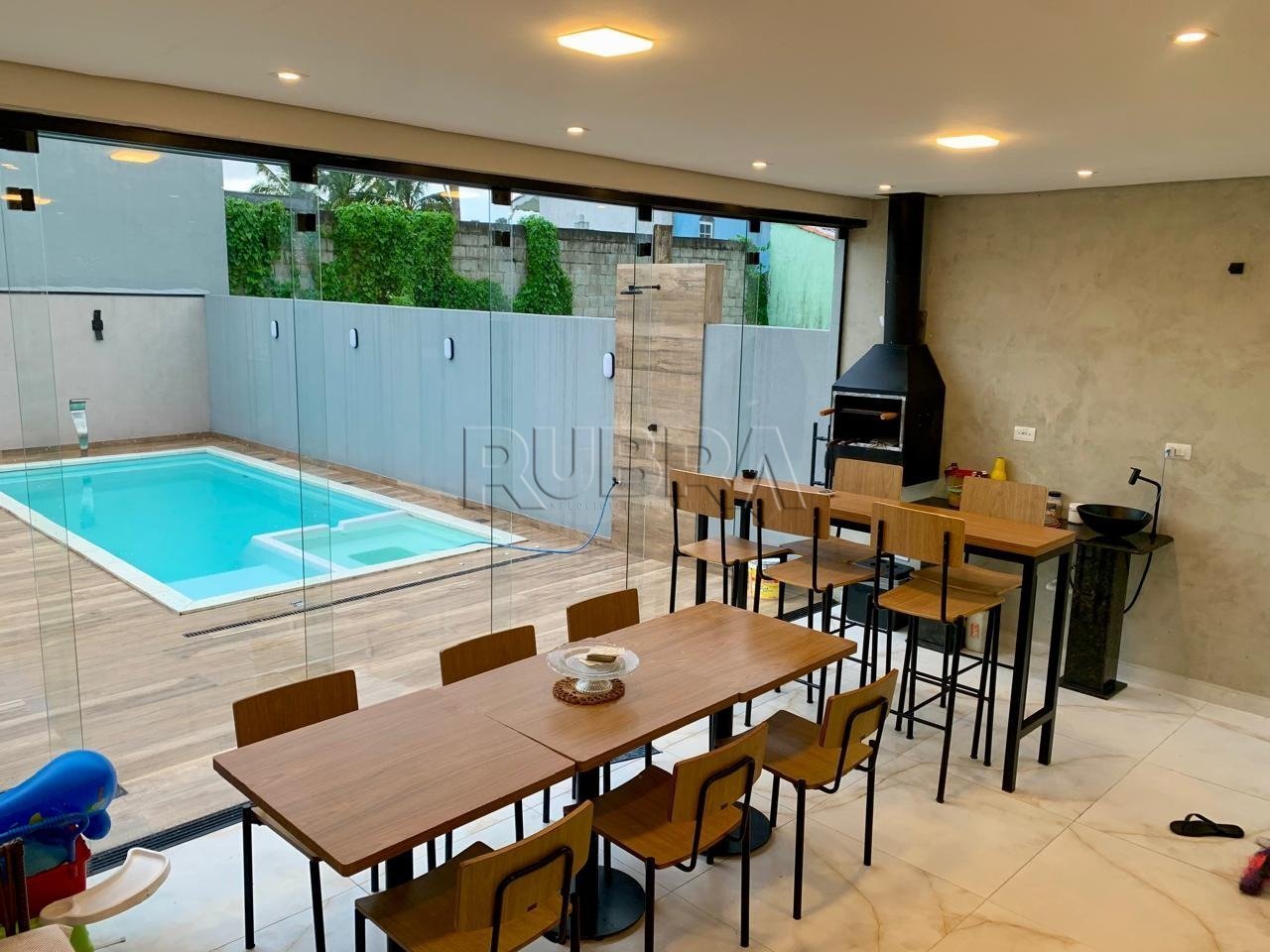 Casa em Condomínio - Bertioga 3 Dormitórios sendo 1 Suíte 2 Banheiros e 1 Lavabo Cozinha integrada com Área Gourmet Piscina com Hidromassagem Sala com pé direito duplo 3 Vagas Lazer e itens do condomínio: Quadra de Futebol, Quadra de Tennis, Quadra de Basquete, pista de skate, Salão Social, Salão de Festas, Academia, Playground, Piscina de Bolinha com Escorrega, Brinquedos de Game, Cinema, Bares, Restaurantes, Sorveteria, Pizzaria, Mercado, Farmácia, Médico 24h e Segurança 24h. Localizado na praia de Boraceia, o condomínio conta com uma extensão de casas estilo americana e com uma praia privativa.