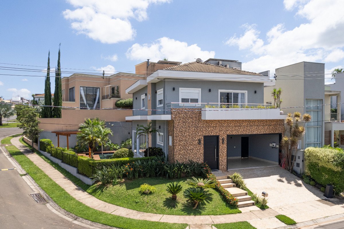 Com 297m² de área construída em terreno de 421m², esta casa combina metragem generosa com uma planta inteligente, priorizando ambientes amplos e integrados e uma vivência prática no dia a dia. O grande diferencial é a vista permanente para o bosque, trazendo privacidade e um cenário verde definitivo. A integração dos espaços valoriza luz natural, circulação e convivência — com soluções que deixam a rotina mais confortável, como ar-condicionado em toda a casa e persianas elétricas. Na parte íntima, são 3 suítes, garantindo conforto e autonomia para a família. A área de lazer é um capítulo à parte: espaço gourmet integrado à sala e à piscina, com portas de vidro do chão ao teto criando a separação na medida certa. O ambiente conta com ar-condicionado, churrasqueira a gás e a carvão e uma vista linda para o verde, perfeita para receber com elegância — ou simplesmente aproveitar o fim de tarde. A energia fotovoltaica presente no imóvel colabora com uma economia considerável na conta de energia elétrica.