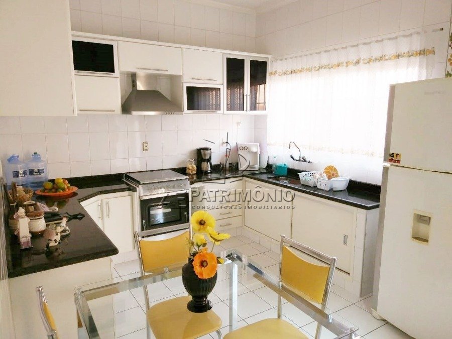 Sobrado com sala de estar, sala de jantar, sala de som e TV, cozinha planejada, 2 banheiros sociais, 4 dormitórios sendo 1 suíte com hidro, varanda, área de serviço, quintal e 2 garagens cobertas. Acabamento Interno: Todo em piso cerâmico e ambientes amplos. Portas e janelas com esquadrias de madeira. Cozinha com bancada em U em granito e armários planejados. Acabamento Externo: Jardim, churrasqueira em alvenaria, bancada de granito e pia. Banheiro externo. Garagem coberta para 2 carros. Descrição do Bairro: Bairro residencial com total infraestrutura de comércios. Descrição do Entorno: Fácil acesso ao Centro da cidade, hipermercados, e avenidas principais. Próximo ao centro.