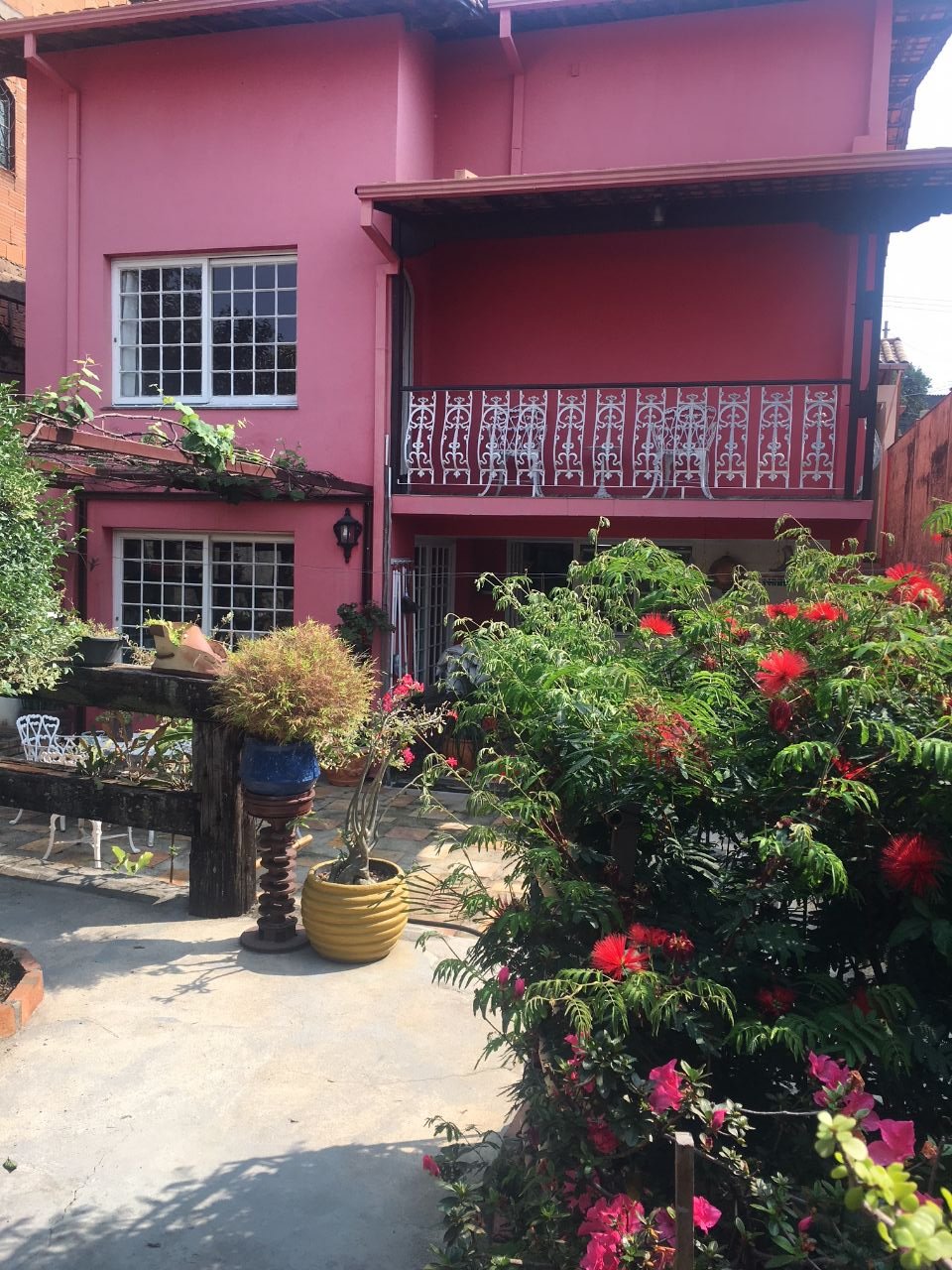 Casa de três quartos. Primeiro nível: Entrada com portão eletrônico, vaga para quatro carros. Sala, duas semi suítes com armários e uma suíte com varanda. Segundo nível e térreo: Sala de jantar e de estar, cozinha com armários, área de serviço. Área gourmet com fogão a lenha. Espaço de ateliê com uma sala, um quarto, banheiro e área de serviço. Lugar agradável e tranquilo, com diversas plantas e frutas. Ideal para quem busca conforto e tranquilidade.