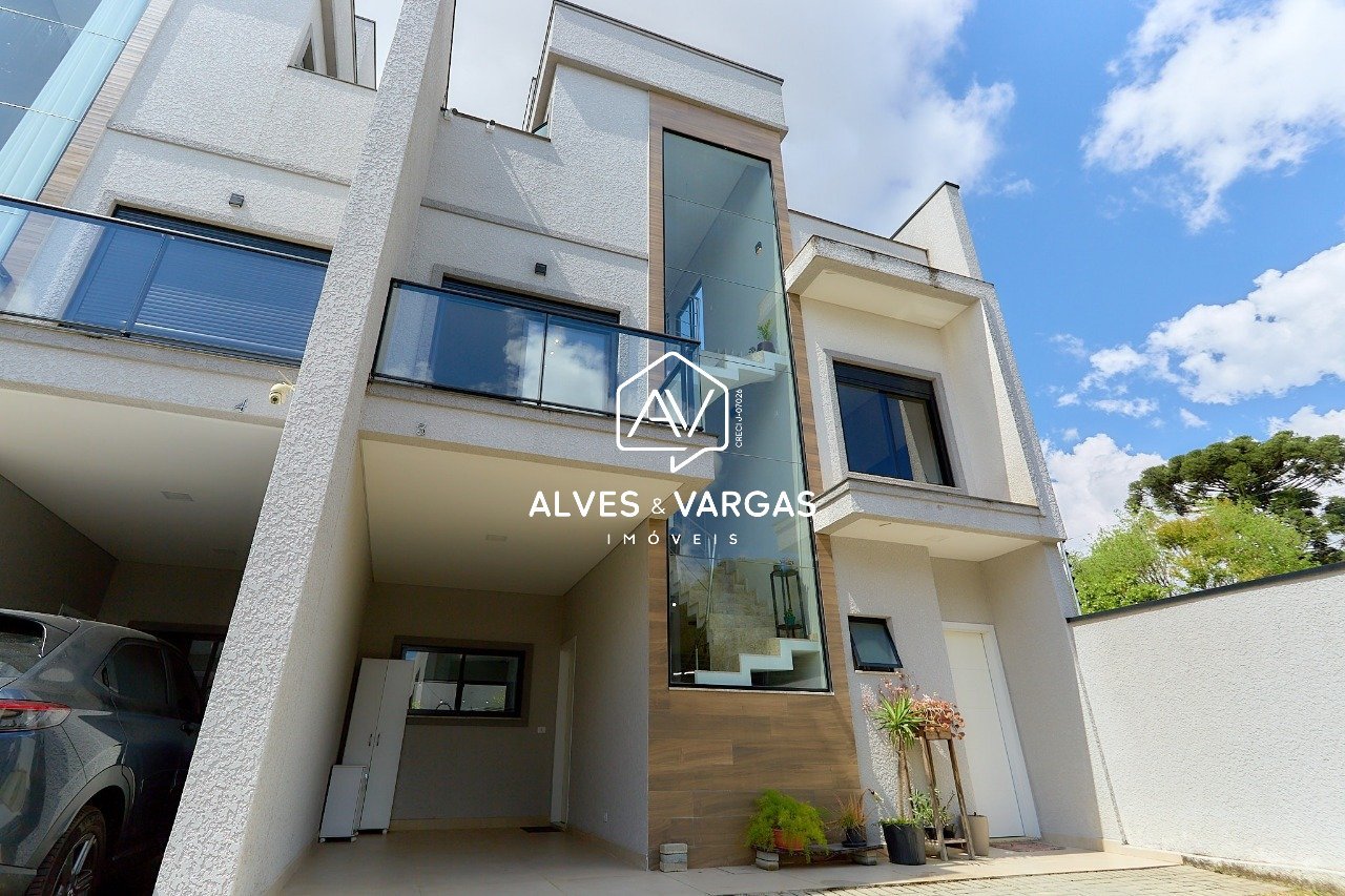 Sobrado moderno, triplex, semi-novo com apenas 3 anos de uso, mobiliado, conceito aberto e ambientes integrados, cozinha com ilha, sala de estar, jantar e área gourmet com quintal nos fundos. Unidade diferenciada por conter 3 vagas de garagem, sendo 1 coberta, suíte máster com amplo closet, vidro panorâmico na fachada e mais 1 quarto no ático, além de ampla área aberta para você observar o pôr do sol. Sua localização é outro ponto importante, vizinho de um supermercado e concessionárias, com fácil e rápido acesso ao centro e bairros. Seu sobrado é composto: Piso Inferior: -Sala de estar, jantar com pé direito de aprox. 3m, rebaixado com gesso; -Cozinha estilo americana mobiliada com ilha; -Área de serviço; -Lavabo; -Espaço de fundos com churrasqueira e teto de vidro parcial; -Escadas em mármore Travertino com corrimão em aço escovado; Piso Superior: -3 Quartos sendo uma Suíte máster com sacada e amplo closet; - Banheiro social; Ático: -Quarto (suíte) ou sala de TV ou escritório; - Banheiro; -Terraço aberto de 21,04m² com preparação para SPA; Detalhes que fazem a diferença: -Esquadrias Pretas; - Pias esculpidas; -Persianas automatizadas nos quartos; -Suíte máster com amplo closet e banheiro com 2 duchas e 2 cubas; -Sala e ático com porcelanato; -Todos ambientes rebaixados em gesso; - Infra para ar condicionado; Mais informações e visitas podem ser agendadas. *Preços e condições de pagamento são orientativos e poderão sofrer alterações, não refletindo às condições de pagamentos vigentes. A unidade apresentada poderá também não estar mais disponível para venda. Entre em contato para mais informações.