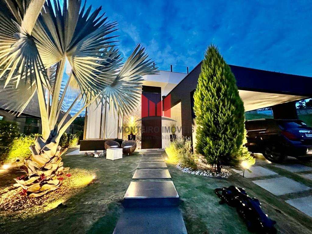 Vendo uma excelente casa moderna com 3 quartos toda decorada e planejada localizada em um condomínio. Uma casa requintada, funcional e muito aconchegante. Características: Casa térrea com sala ampla para 3 ambientes, projeto luminotecnico, cozinha conceito aberto planejada com armários de qualidade, bancadas em granito, 3 quartos, sendo 1 suíte com closet, área de serviço totalmente separada e um paisagismo encantador. Área gourmet com churrasqueira e projeto de iluminação. Garagem para 4 carros, sendo 2 cobertos. O condomínio: É um dos melhores da região, com infraestrutura completa, portaria 24 horas, segurança, controle de acesso e lazer completo com quadras de tênis, quadra poliesportiva, campo de futebol gramado, piscina, sauna, academia, quiosques, espaço gourmet e cercado de área verde para quem busca qualidade de vida e contato com a natureza.
