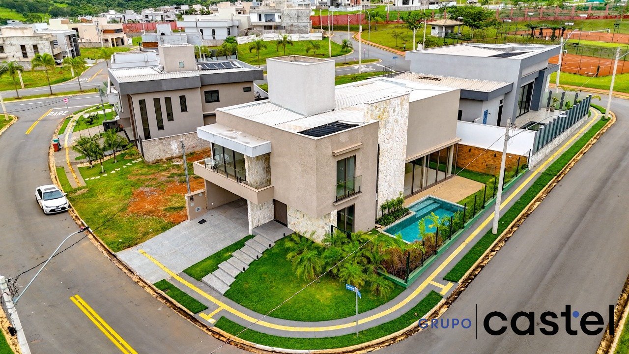 Sobrado de alto padrão à venda no Jardins Capri - Projeto arquitetônico: Dalson Pereira - Localização: Parte alta do condomínio - Posição: Esquina - Garagem: 4 vagas (2 cobertas) - 4 suítes plenas - Suíte máster com closet - Armários planejados em todos os quartos - Salas amplas e bem definidas (estar, jantar e TV) - Pé-direito duplo - Cozinha americana em conceito aberto - Armários planejados - Lavabo com revestimento de qualidade - Banheiro de serviço - Automação completa - Sistema de som ambiente - Piscina aquecida Agende sua visita e conheça cada detalhe deste imóvel!