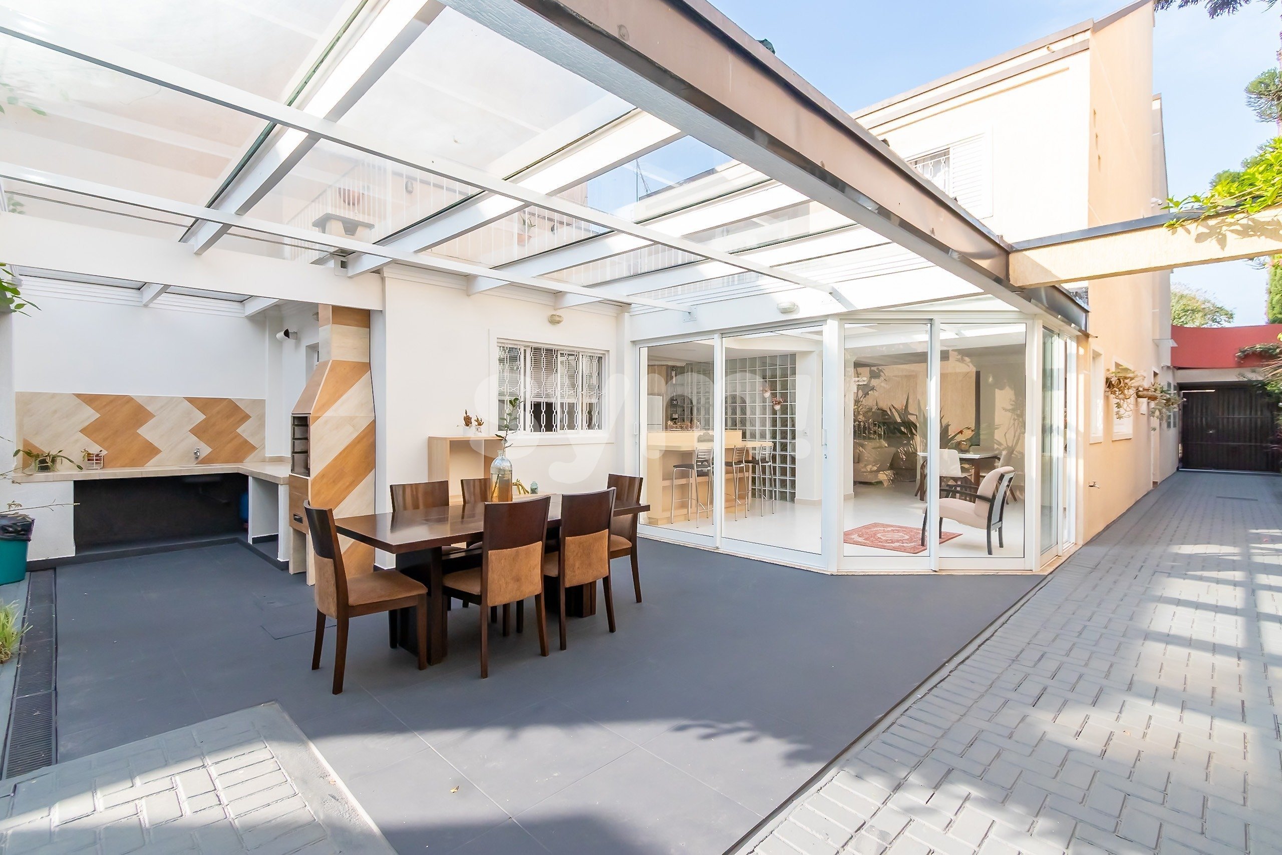 Está em busca de mais qualidade de vida, morando e trabalhando no mesmo lugar? Este sobrado triplex é ideal para você. Com área comercial e residencial independentes, ele oferece praticidade no dia a dia e pode representar o fim da rotina cansativa de trânsito entre casa e trabalho. O imóvel tem excelente aproveitamento de espaço, um astral leve, paisagismo encantador e ótima incidência de luz natural, o que contribui tanto para o bem-estar da família quanto para o sucesso de um negócio. A área comercial no pavimento térreo tem 48m², piso laminado novo, lareira aconchegante, amplas janelas e um visual que causa boa impressão logo na chegada dos seus clientes. Na parte residencial, são 242m² distribuídos em três pavimentos. No térreo, as salas de estar e jantar são integradas à cozinha e à churrasqueira gourmet, em um ambiente amplo e iluminado naturalmente. Há ainda um banheiro completo, área de serviço independente e um quintal com espaço suficiente para instalar jacuzzi, piscina ou o que a sua criatividade permitir. No segundo pavimento, estão duas suítes amplas e um terceiro dormitório com acesso a uma sacada generosa. O ático oferece um espaço versátil, ideal para sala de TV, home office, sala de jogos ou o que mais você precisar. Se quiser, também é possível morar no imóvel e alugar a área comercial, garantindo uma renda extra. Seja qual for o seu plano, este imóvel representa um excelente investimento. Agende sua visita e venha conhecer de perto todos os detalhes que fazem deste sobrado uma escolha única. Observações: As informações dos imóveis podem ser alteradas, inclusive quanto ao preço, sem aviso prévio. Os valores de condomínio e IPTU citados são apenas a título de referência e devem ser levantados no momento da visita. A área do imóvel e idade informados são aproximadas e precisam ser confirmadas pelo cliente no momento da visita ao imóvel ou em sua respectiva documentação, assim como o número de vagas.