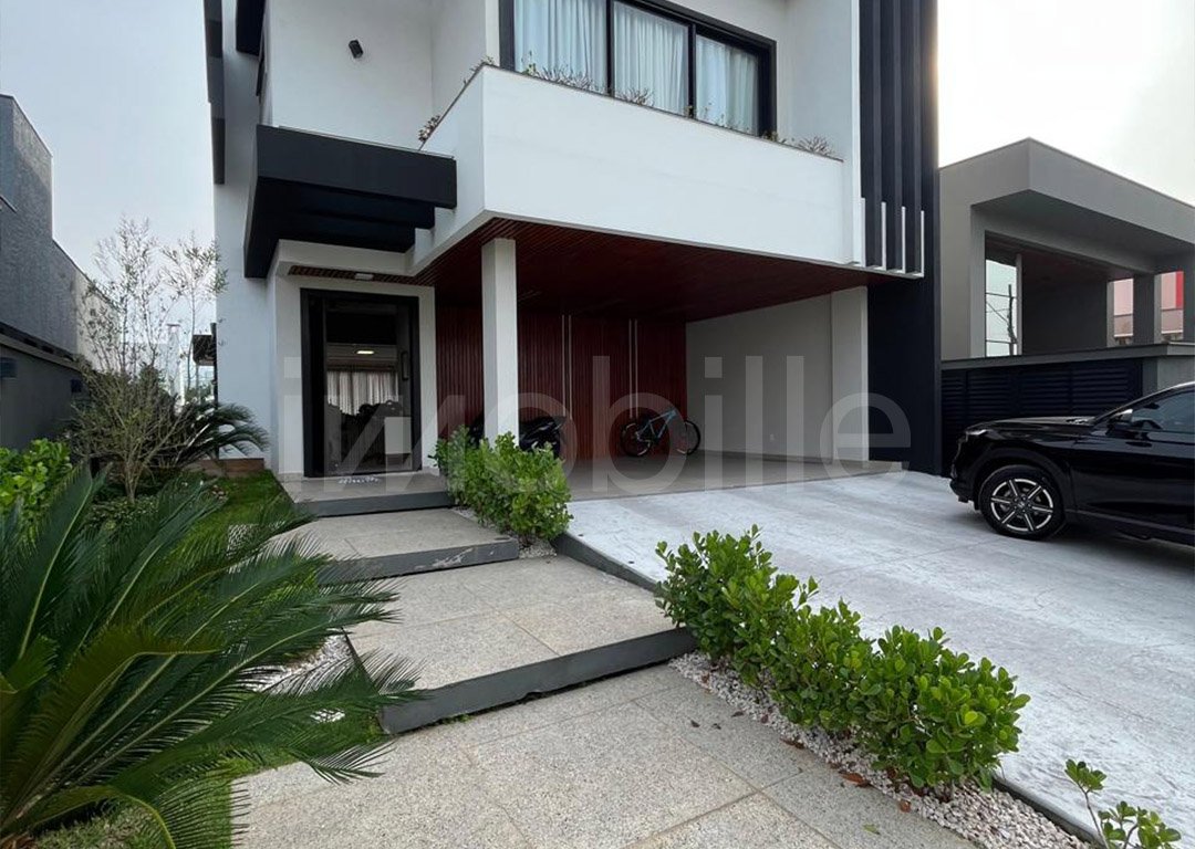 <b>CASA MOBILIADA NO CONDOMÍNIO</b> - Uma oportunidade exclusiva em um dos melhores condomínios da região! <b>Casa totalmente mobiliada</b> e decorada, com excelente padrão de acabamento e ótima rentabilidade. Diferenciais do Imóvel - 03 suítes, piscina, mobiliada e decorada, alugada, 281,14 m² de área privativa, 434,14 m² de terreno, porcelanato nas áreas molhadas, piso vinílico nas áreas quentes, rebaixo em gesso, portas laqueadas, churrasqueira a carvão, fechadura eletrônica e 04 vagas de garagem (02 cobertas + 02 descobertas). Localizada em um condomínio completo, seguro e com infraestrutura impecável. O empreendimento possui área de lazer completa, piscina grande com raia semiolímpica e borda infinita, club house com lounge, salão de festas, academia completa, SPA, salão de jogos e cinema, área de lazer linear e áreas verdes por toda a extensão, ciclovia de cerca de 2,5 km, quadras esportivas, variadas (poliesportiva, tênis, areia etc.), playgrounds, orquidário e espaços ao ar livre para caminhadas/atividades, quiosques.