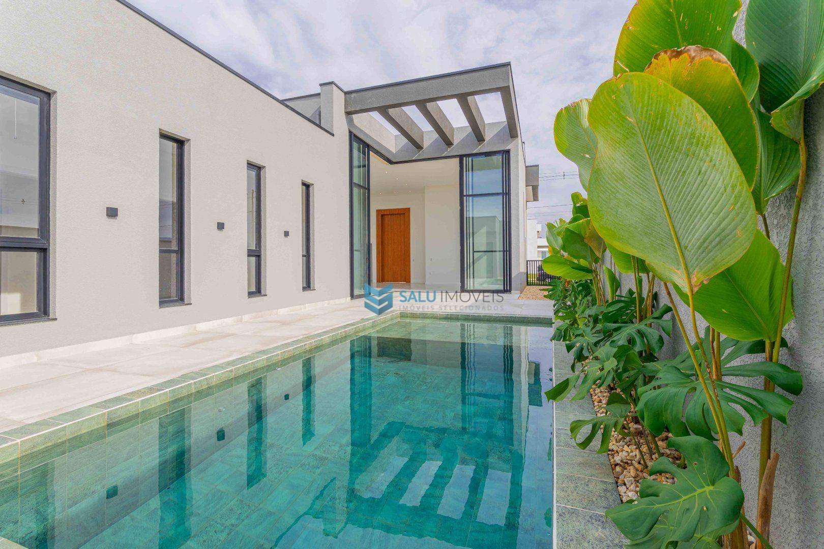 Código do Imóvel: CM1469931-22 - 4 Dormitórios (1 Pode Virar Home-Office) - 3 Suítes (Sendo 1 Suíte Master) - 3 Banheiros - 1 Lavabo - Living Integrado - Área Externa com Piscina Privativa - 3 Vagas de Garagem - Área de Serviço - Casa Nova sem Mobília
