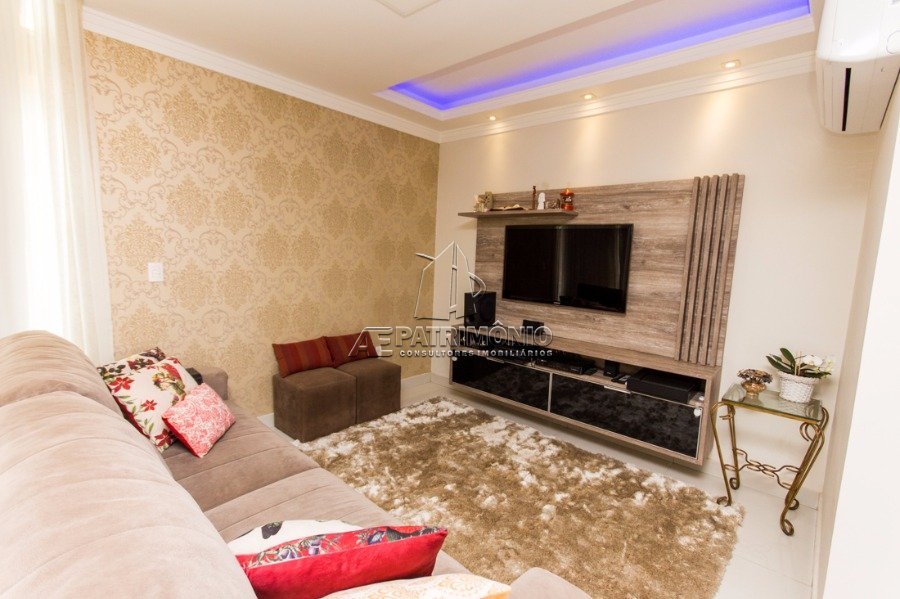 Sobrado em condomínio com sala 2 ambientes, sala de jantar, Home Theater, cozinha planejada, despensa, lavabo, banheiro social, 3 dormitórios sendo 1 suíte, varanda, escritório, área de serviço, quintal, espaço gourmet e 4 garagens sendo 2 cobertas. Acabamento Interno: Todo modulado. Suíte com varanda. Escritório repleto de armários. Sala de jantar com mesa modulada para 6 lugares. Acabamento externo: Garagem para 4 carros sendo 2 cobertas.