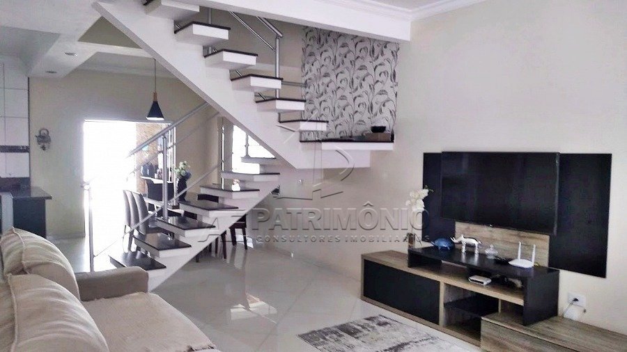 Casa sobrado em condomínio com sala de estar e sala de jantar, lavabo, cozinha planejada, banheiro social, 3 dormitórios sendo 1 com suíte, área de serviço, quintal, área gourmet e garagem em fase de acabamento. Acabamento interno: Todo em piso porcelanato, salas com espelhos e papel de parede. Escada em granito e corrimão em aço inox. Cozinha planejada com forno elétrico. 2 dormitórios com ar-condicionado. Banheiro com bancada em mármore travertino, box de vidro temperado. Descrição do bairro: Infraestrutura completa em comércios e serviços. Descrição do entorno: Próximo a supermercados, escolas, farmácias, padarias, transporte público e comércios em geral. Fácil acesso à rodovia.