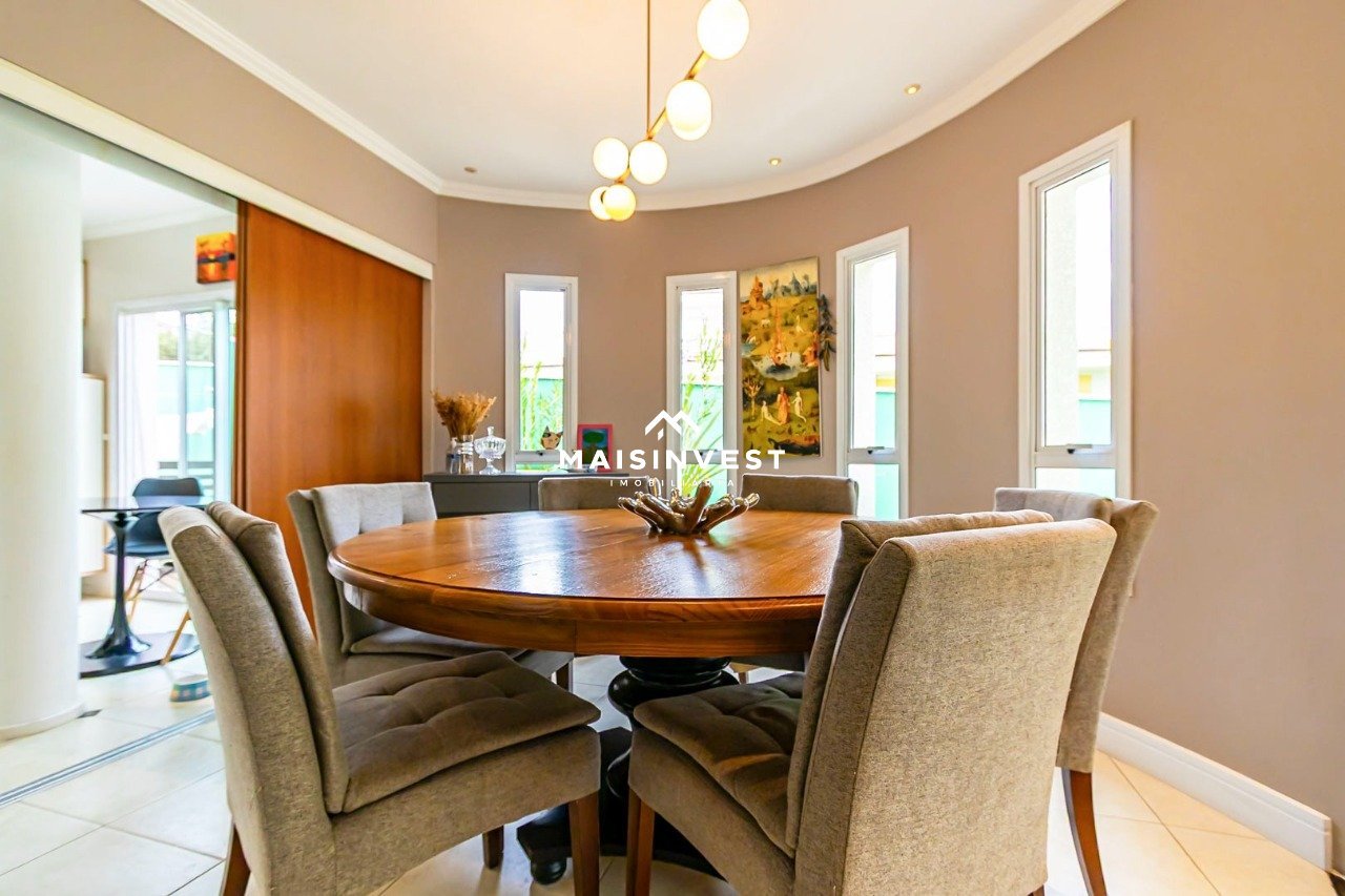 Residência à venda no Residencial Parati em Alphaville Graciosa, ideal para quem busca conforto, sofisticação e qualidade de vida. Com 340 m² de área construída em terreno de 748 m², o imóvel apresenta planta funcional. Dispõe de suíte master com amplo closet e sacada privativa, duas demi-suítes, suíte térrea para visitas, sala de estar íntimo com lareira, jantar, cozinha e banheiros com piso aquecido. Conta ainda com espaço gourmet com spa integrados e duas vagas de garagem coberta. Entre os diferenciais, destacam-se aquecimento a gás com apoio solar, captação e reutilização de água da chuva, ar-condicionado em todos os cômodos, projetos de iluminação e paisagismo, além de imóvel averbado. Uma residência completa, que alia elegância, tecnologia e bem-estar em um dos condomínios mais valorizados da região.