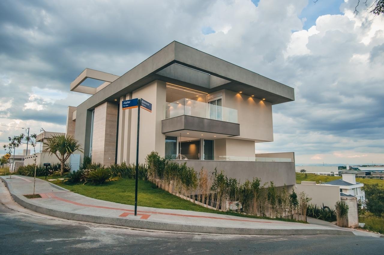 Casa de luxo em condomínio fechado: 1º pavimento Sala conjugada com gourmet, lavanderia, 1 suíte e banheiro espaço gourmet. 2º pavimento Sala de home com varanda, rouparia, 2 suítes com closet e banheiro. 1 suíte master com varanda, rouparia. Garagem com 4 vagas paralelas.