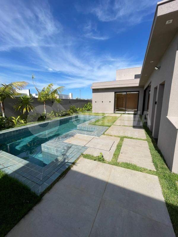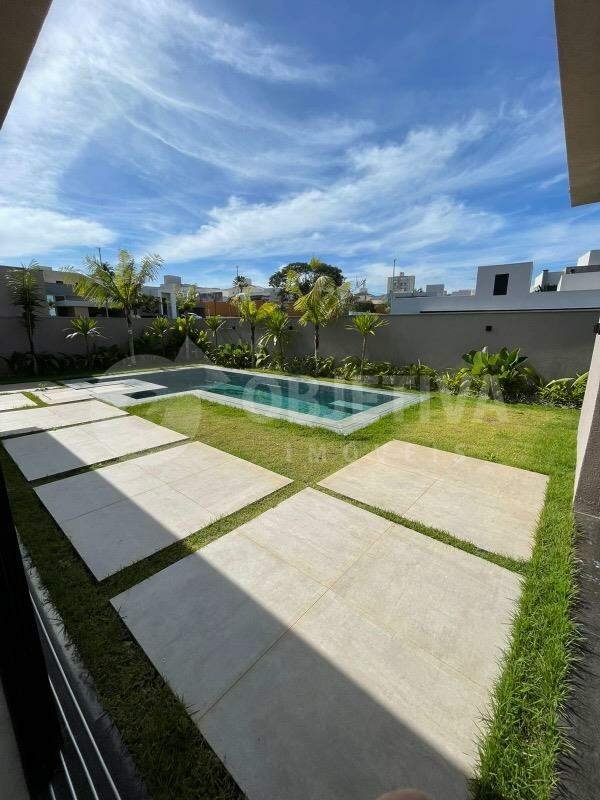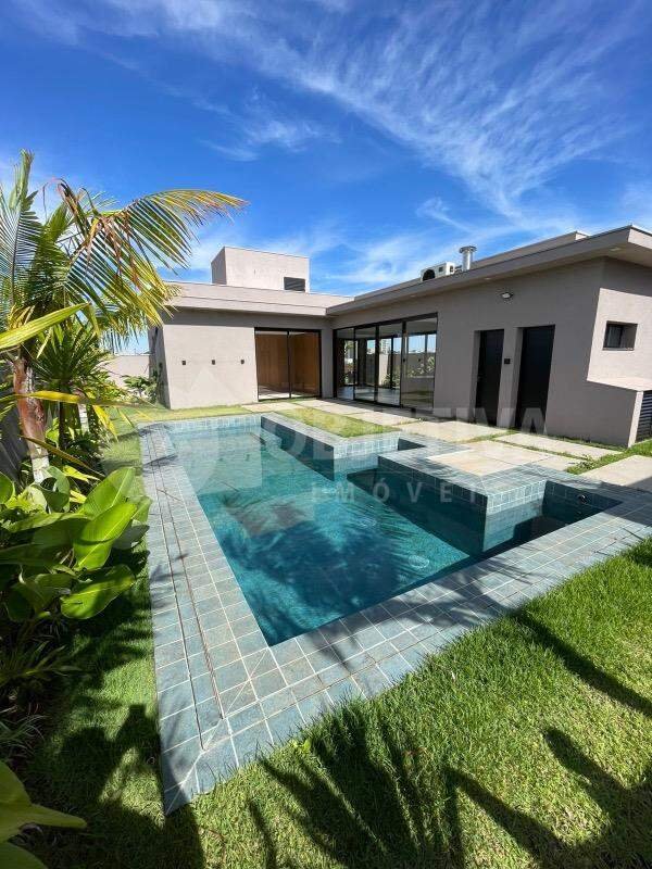 Espetacular casa nova disponível no luxuoso condomínio em Uberlândia, são 471m² de terreno e aproximadamente 255m² de área construída que dispõe de 4 suítes, incluindo 1 suíte máster com closet, cozinha toda planejada com pia e bancada em granito, sala de estar, lavanderia, banheiro social, 4 vagas de garagem coberta, área externa completa com linda piscina aquecida, hidromassagem, espaço gourmet completo, energia fotovoltaica, piso de alta qualidade, louças e metais de primeira linha, pedras em preto escovado, iluminação elegante, esquadrias de alto padrão. Toda montada com móveis planejados de primeira qualidade, armário embutido, box em blindex até o teto na cor preta, duchas, espelhos, painéis. Fachada imponente, entrada surreal, projeto moderno e bem executado, o mais fino acabamento do mercado. Lindo paisagismo e jardim por toda casa. Viva com exclusividade e máximo conforto em um dos endereços mais desejados da cidade. O condomínio conta com estrutura de lazer completa e exclusiva, Clube, Sala de Ginástica, Fitness Center. Segurança para você e sua família, planos diretores personalizados, fechamento do perímetro com muros e gradis, portaria com segurança e monitoramento 24 horas. O que não vai faltar para sua família é contato com a natureza. O residencial conta com mais de 145 mil m² de áreas verdes, sendo 88 mil m² deles compostos por uma área de preservação permanente. O empreendimento ainda conta com quatro praças temáticas.