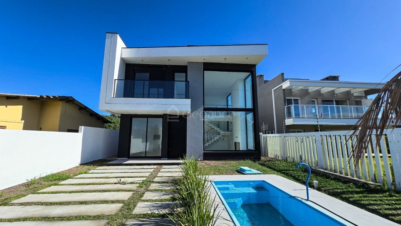 O sobrado descrito apresenta características que o tornam uma opção de moradia de alto padrão, ideal para quem busca conforto e proximidade com a natureza. A localização privilegiada, a apenas uma quadra do mar e de frente para uma praça, proporciona uma vista deslumbrante e a sensação de tranquilidade. O design moderno e contemporâneo do imóvel, aliado à sua condição de nunca ter sido habitado, oferece uma experiência única de estreia para os futuros moradores. Com quatro dormitórios, incluindo duas suítes, o espaço é amplo e bem distribuído, garantindo privacidade e conforto. O living em dois ambientes com lareira cria um ambiente acolhedor para os dias mais frios, enquanto a cozinha estilo americana com churrasqueira é perfeita para o entretenimento e refeições em família. A área de serviço funcional, os banheiros sociais adicionais e o amplo pátio com piscina complementam as comodidades deste belo sobrado, que ainda conta com garagem para dois carros, oferecendo praticidade e segurança.