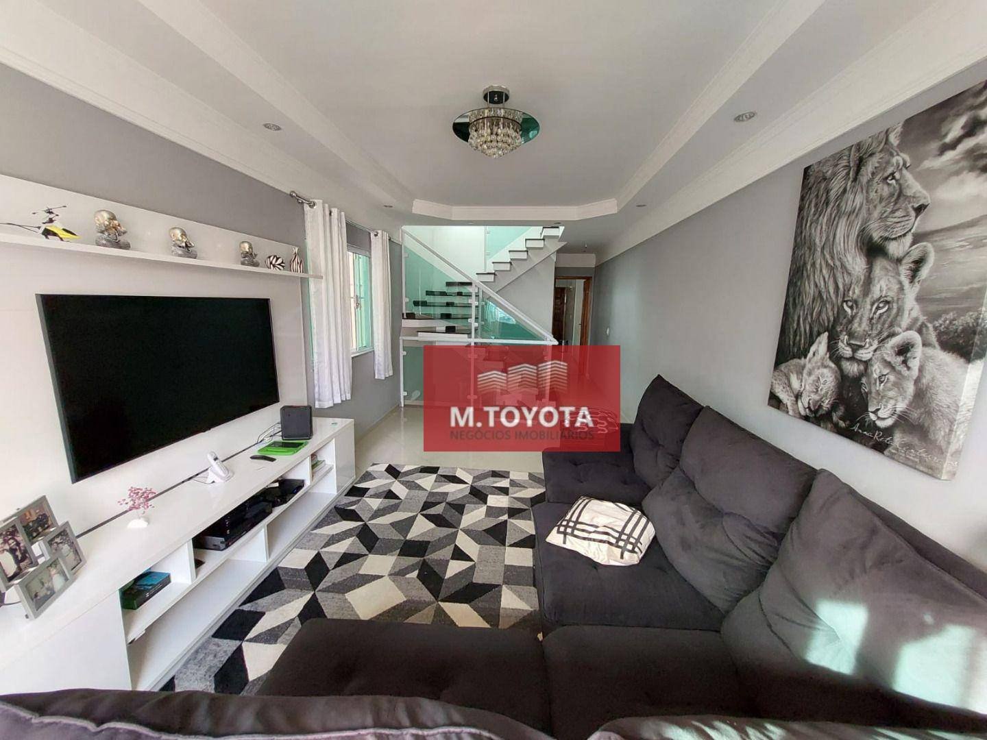Código do Imóvel: CM1244770-7. Sobrado lindo demais com 3 dormitórios, sendo uma suíte com closet e armários. Sala muito bem decorada e mobiliada. Escadaria em mármore, cozinha completamente mobiliada com ilha, coifa, fogão, geladeira etc. 4 vagas de garagem.