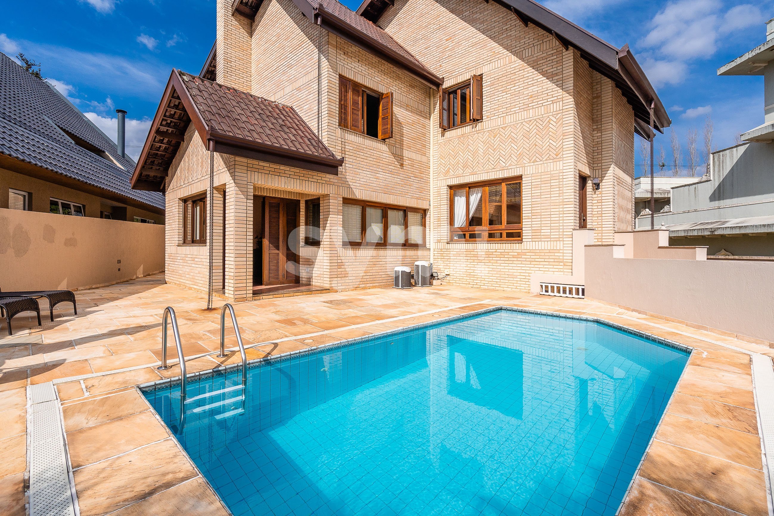 Residência de alto padrão em um dos condomínios mais desejados da cidade. Destaque para o amplo terreno com piscina, espaço ideal para receber família e amigos. Sala de estar com lareira e lavabo, sala de jantar com churrasqueira, escritório e sala íntima. Duas suítes com closet, dois quartos atendidos por banheiro social. Contempla amplas peças com piso em madeira. Vagas de garagem cobertas, depósito e dependência completa de empregada. Observações: As informações dos imóveis podem ser alteradas, inclusive quanto ao preço, sem aviso prévio. Os valores de condomínio e IPTU citados são apenas a título de referência e devem ser levantados no momento da visita. A área do imóvel e idade informados são aproximadas e precisam ser confirmadas pelo cliente no momento da visita ao imóvel ou em sua respectiva documentação, assim como o número de vagas.