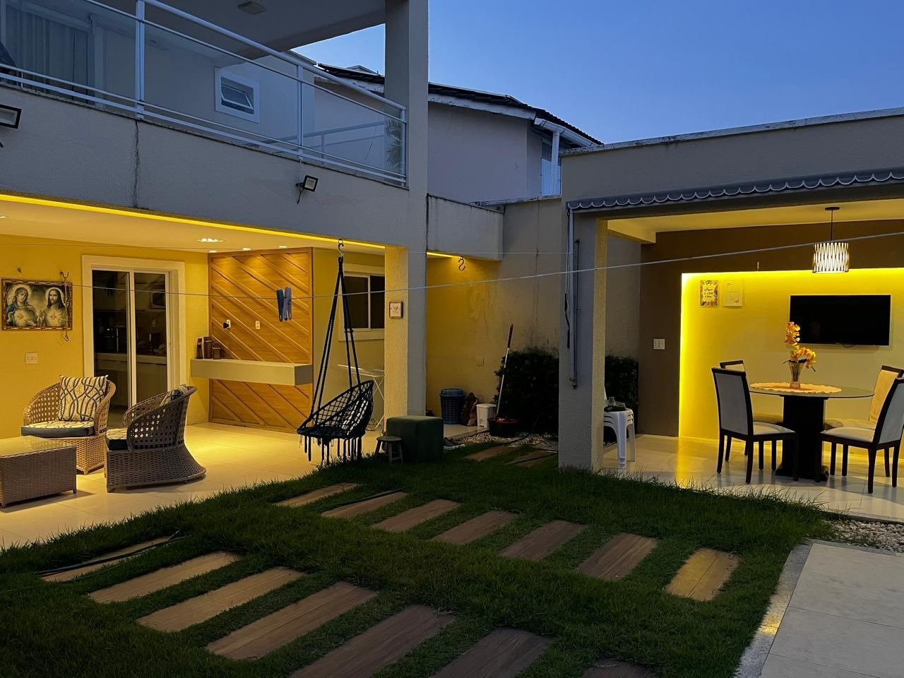 Linda Casa Mobiliada no Condomínio Grand Jardins - Eusébio/CE. Sofisticação, conforto e projeto completo em um dos condomínios mais desejados da região. 240 m² de área construída, 100% projetada, projeto arquitetônico e luminotécnico exclusivos, distribuição inteligente. Pavimento Superior: 3 suítes amplas. Pavimento Inferior: 1 quarto de visitas com guarda-roupa embutido, cama e prateleiras, sala de jantar com mesa, cozinha equipada com cooktop, geladeira e micro-ondas. Área Externa: Garagem para até 3 carros, deck espaçoso com possibilidade para futura piscina. Um imóvel moderno, funcional e pronto para morar, ideal para quem busca conforto, segurança e excelente padrão de acabamento em condomínio fechado.