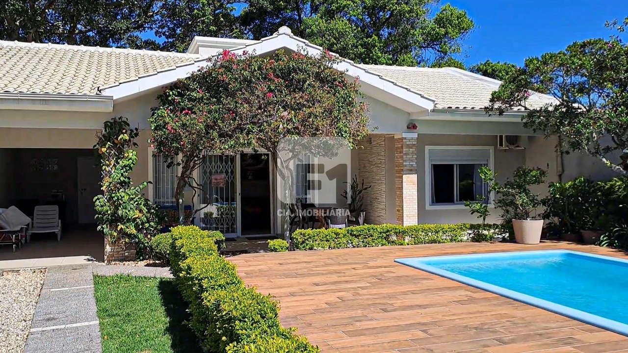 Casa de 3 quartos mobiliada com piscina disponível para locação no Campeche, em Florianópolis. Linda casa com uma bela piscina próxima à praia do Campeche. Com 390m² de área do terreno, sendo 100m² construídos, este imóvel oferece 3 dormitórios, sala para 2 ambientes, banheiro social, área de serviço, 1 garagem coberta e mais 3 vagas descobertas. Na área externa há um lindo espaço de lazer com um deck espaçoso com piscina e espaço para confraternização, sol durante todo o dia e um jardim maravilhoso com flores. Ainda conta com um sistema de captação da água das chuvas, para uso na limpeza do quintal. A casa também oferece um espaço gourmet na edícula, além de churrasqueira, fogão à lenha, janelas amplas para ventilação, 1 banheiro, e 1 quarto extra. Situada em região prática, garante fácil acesso às praias, supermercados locais, posto de gasolina, farmácias, comércios, opções gastronômicas e demais facilidades locais. Venha conhecer o potencial oferecido pela região e imóvel.
