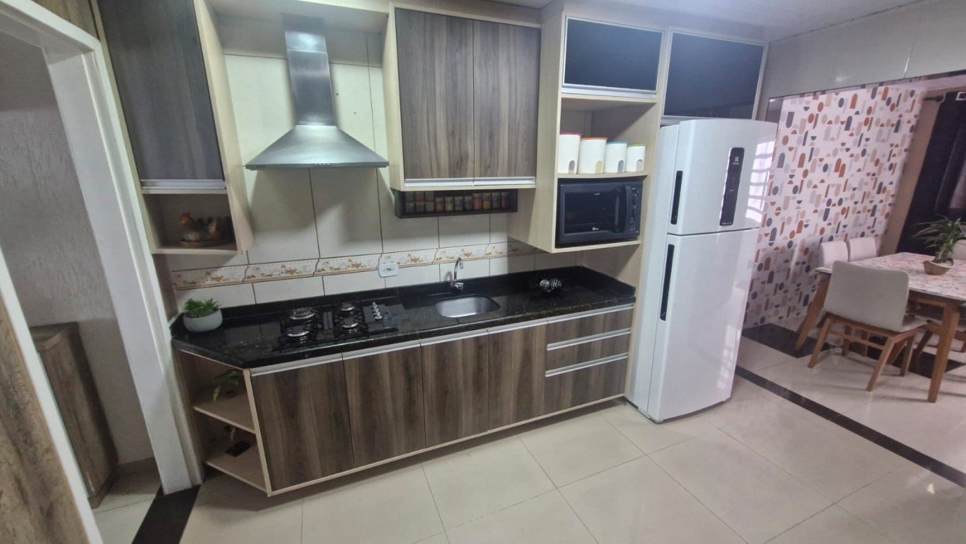 Descubra o encanto de viver em uma casa térrea de 110 m², onde cada detalhe foi pensado para proporcionar conforto, praticidade e bem estar. Com três dormitórios amplos, um banheiro bem distribuído e duas vagas de garagem cobertas, este lar reúne o espaço ideal para a família moderna. Ao entrar, a elegância do acabamento em porcelanato conduz o olhar para a sala de jantar, perfeita para receber amigos e familiares em um ambiente sofisticado. A sala de TV, acolhedora e silenciosa, garante momentos de lazer com total privacidade. A cozinha, totalmente equipada com móveis planejados de alto padrão, oferece funcionalidade e estilo, permitindo preparar suas refeições com prazer. A área de serviço separada traz praticidade ao cotidiano, enquanto a área gourmet com churrasqueira cria o cenário perfeito para churrascos, encontros ao ar livre e celebrações especiais. O portão eletrônico assegura segurança e comodidade, complementando o conjunto de benefícios que esta casa oferece. Localizada em frente a um bosque de preservação, a propriedade proporciona um contato direto com a natureza, trazendo tranquilidade e ar puro ao seu dia a dia. A vizinhança conta com comércio variado a poucos passos, escolas, e um ponto de ônibus próximo, garantindo fácil acesso a todas as conveniências urbanas. Semi mobiliada e com móveis planejados em todos os ambientes, a casa está pronta para receber você sem a necessidade de reformas ou ajustes. É a oportunidade de viver com qualidade, segurança e estilo, em um ambiente que une o melhor da vida urbana ao contato com a natureza. Não perca a chance de transformar este espaço em seu novo lar. Agende sua visita e faça deste lugar a realização dos seus sonhos. Aceita financiamento e propostas de troca.