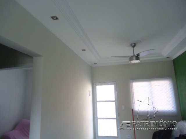 Casa Térrea em Condomínio com sala de estar, cozinha, banheiro social, 4 dormitórios sendo 1 suíte, área de serviço, espaço da churrasqueira, quintal e garagem para 2 carros sendo 1 coberta. Acabamento Interno: Todo em piso cerâmico. Sala de estar com portas e janelas de alumínio e pintura eletrostática. Cozinha com moldura em gesso e pia em granito. Dormitórios com moldura em gesso, janelas de alumínio e portas de madeira. Acabamento Externo: Piso cerâmico. Acessório do Imóvel: Churrasqueira. Acessórios do Condomínio: Interfone, portaria, câmera de segurança e portão automático.