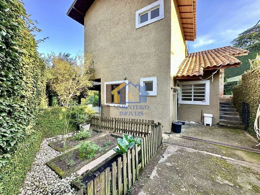 Belíssima casa com arquitetura autêntica em condomínio fechado com segurança e privacidade no coração da Granja Viana! Charmosa, aconchegante e muito prática, totalmente integrada à natureza. Ambientes desenhados para quem busca bem-estar e conforto, com muito bom gosto. Hall de entrada com lavabo. Living: sala de estar com lareira e sala de jantar, integrados com ampla varanda envidraçada, voltada para o verde. Sala de TV com ar-condicionado separada por portas de correr e varanda com pergolado. Grande salão gourmet com churrasqueira, bancada com armários, pia e fogão cooktop. Deck suspenso com linda vista para a natureza e um charmoso spa fechado com jacuzzi e sauna úmida. Lavabo externo. Cozinha planejada com fogão embutido e coifa. Piso em ladrilho hidráulico. Despensa espaçosa. 3 dormitórios sendo 1 suíte, com armários planejados e ar-condicionado, sendo a suíte com closet. Lavabo externo. Espaço para horta. Amplo gramado com árvores frutíferas. Lavanderia com tanque em inox e armários. Quarto e banheiro de serviço. Depósito. Piso do 2o andar com acabamento em ladrilho hidráulico e laminado estilo madeira. Aquecimento à gás. Portão automático. 3 vagas descobertas de estacionamento.
