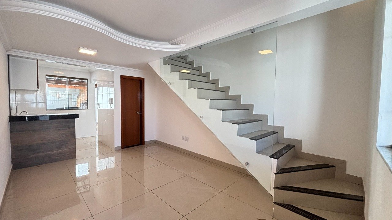 CASA INDIVIDUAL / 2 QUARTOS / 2 VAGAS / B. SANTA BRANCA Casa duplex ao lado do Via Brasil e Estação Pampulha. 1º pavimento: -Sala para dois ambientes com rebaixamento; -Lavabo com armário; -Cozinha estilo americana com armários; -Área de serviço separada; -Área externa com espaço gourmet coberto; 2º pavimento: -2 quartos sendo 1 com armário; -Banho social. Acabamento com piso em porcelanato e bancadas em granito. Espaço na frente de garagem para 2 vagas confortáveis. Portão eletrônico. Localizada a 1 quarteirão da Av. Pedro I. Ônibus na porta. Pode ser financiada. Agende sua visita.