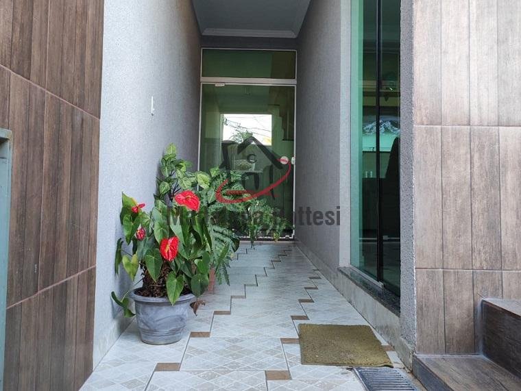 Casa em 3 níveis: no 1º, garagem para 4 carros e 1 banheiro; no 2º, 3 dormitórios, sendo 1 suíte, banheiro social, sala de estar, sala de jantar, cozinha com planejados, varanda grande com piscina e, nos fundos, corredor com churrasqueira e lavanderia; no 3º piso, suíte master com closet, varanda, mais uma área coberta com banheiro. A casa possui geração de energia elétrica fotovoltaica. A localização é excelente, em bairro novo, próximo ao centro da cidade, com escola, farmácias, supermercados, transporte urbano etc. - Móveis Planejados - Área de Serviço - Copa - Cozinha - Quintal - Bares e Restaurantes - Escola - Farmácia - Supermercado