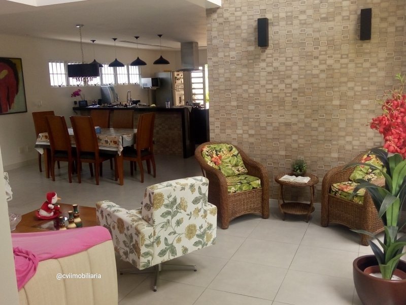 Casa moderna. 1o piso em conceito aberto, ampla sala, cozinha americana com ilha, lavabo, despensa, área de lavanderia. 2o piso: 1 suíte master com jardim de inverno, 2 semi suítes com closet, 1 quarto que pode ser escritório, sala de TV, roupeiro. Espaço gourmet com 2 banheiros, churrasqueira, bancada em granito com pia, forno para pizza, espaço para boate e amplo quintal.