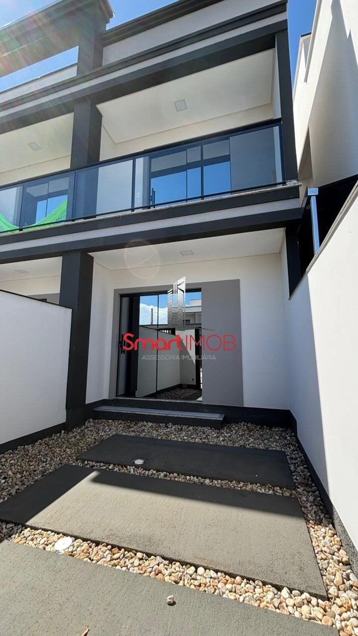 Sobrado em Tijucas O duplex dispõe de 2 suítes, banheiro social, lavabo, sala de estar, cozinha, churrasqueira, área de serviço, sacada e 1 vaga de garagem descoberta. Aceita FGTS Aceita financiamento bancário