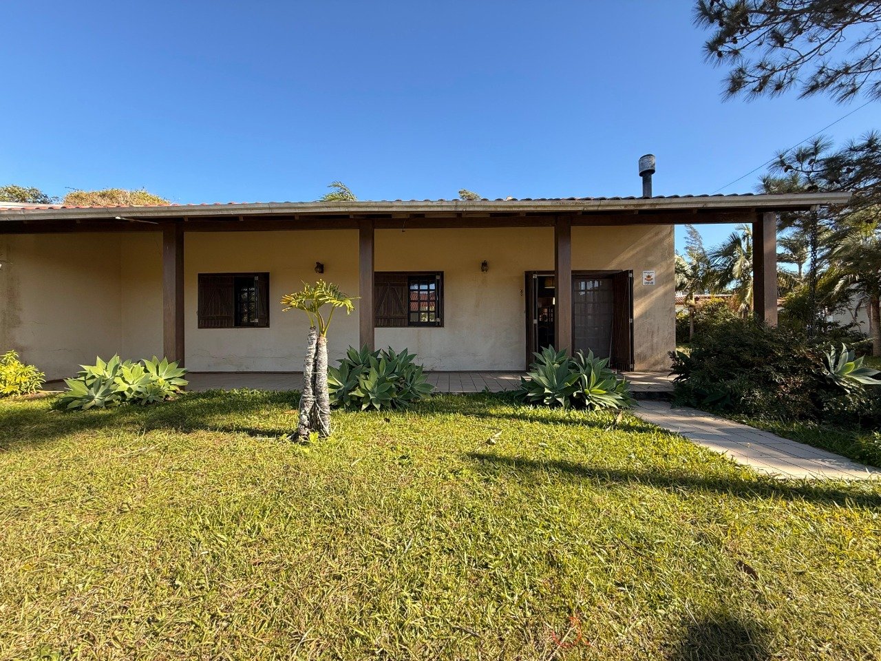 Casa Térrea Mobiliada em Dois Terrenos na Praia de Maristela, em Xangri-Lá. - 03 dormitórios, sendo 01 suíte; - 02 banheiros sociais; - Living integrando 02 ambientes com lareira; - Cozinha separada com churrasqueira; - Aberturas em madeira nobre; - Depósito e área externa; - Amplo pátio com piscina.