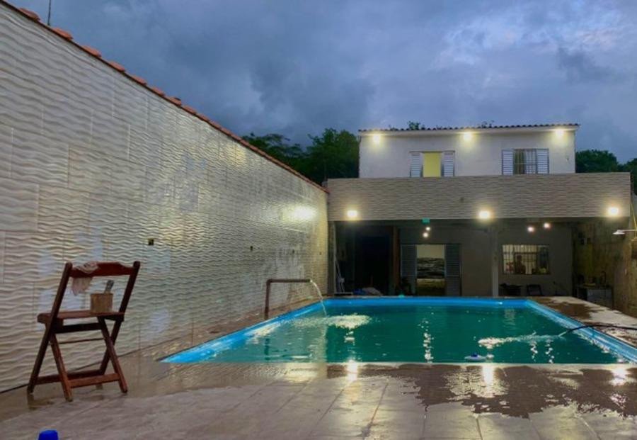 Vendo sobrado em Bertioga, casa recém-feita, pouco usada, com suíte e quarto de hóspedes em cima, salinha, sacada, cozinha, banheiro e sala embaixo, além de área externa com churrasqueira. Piscina nova, medidas 4x8, profundidade 1.40. Garagem para 10 carros, portão elétrico, monitorada por câmeras, acomoda até 20 pessoas, toda mobiliada, ideal para aluguel aos fins de semana, com rendimento entre 1000 a 1500, dependendo das diárias. Localização em Bertioga, a 5 km da praia, na rua da trilha da cachoeira, terreno com aproximadamente 500 metros quadrados. Ótimo imóvel, localizado em uma das melhores ruas do bairro. Próximo a toda a infraestrutura da região, como mercados, farmácias, hospitais, escolas e ampla rede bancária. Com fácil acesso às principais avenidas da região. Para informações mais detalhadas sobre esse imóvel, preencha o formulário ao lado, e um de nossos profissionais entrará em contato com todas as informações relevantes. Sobre o financiamento Caso queira financiar, temos uma equipe especializada que atua em diversos bancos, sempre à procura da melhor taxa de juros, para assim possibilitar uma grande economia na compra de sua propriedade. Visitas Nos informe qual o melhor dia e hora para agendarmos a visita à sua futura propriedade; existe a possibilidade de visita aos domingos, que deverá ser marcada com pelo menos dois dias de antecedência, após verificação de disponibilidade. Os preços, disponibilidades e informações podem sofrer mudanças sem aviso prévio. Por esse motivo, todos os valores e informações devem ser confirmados pelo departamento comercial. Reservamo-nos o direito de corrigir erros relacionados a metragem de terreno, área construída e área útil, uma vez que as informações são fornecidas pelos proprietários. Todas as informações relacionadas aos imóveis exibidos devem ser confirmadas antes da visita.
