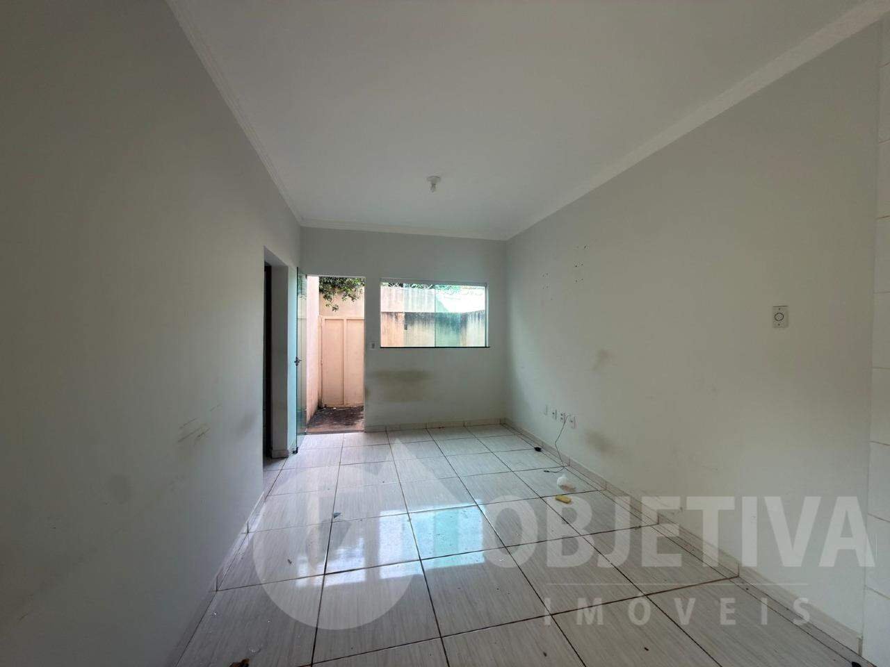 Casa disponível para aluguel no bairro Shopping Park, em Uberlândia, com área de 80 m². O imóvel conta com 2 quartos, 1 banheiro social com chuveiro e espelho, sala conjugada com a cozinha e pequena área de serviço com corredor em formato de L. Possui 1 vaga de garagem e está localizada em uma colônia com 3 casas, próxima a comércios e escola, oferecendo praticidade no dia a dia.