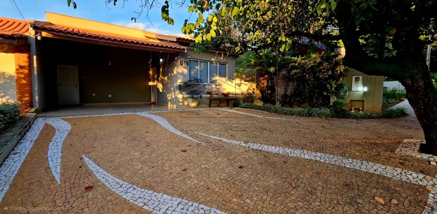 Excelente casa térrea com 3 suítes, lavabo, sala ampla com sanca, jardim de inverno, cozinha com armários, área gourmet com forno de pizza e banheiro externo.