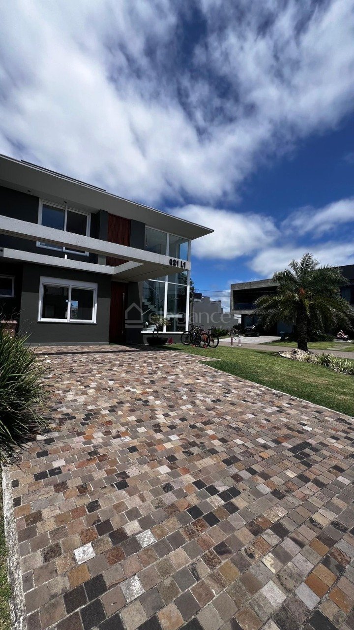 Casa beira lago de esquina à venda no Condomínio Blue. 04 dormitórios 04 suítes Mobiliada e decorada Amplo living em ambientes Cozinha americana com churrasqueira Lavanderia Lavabo Piscina de concreto Abrigo para carro.