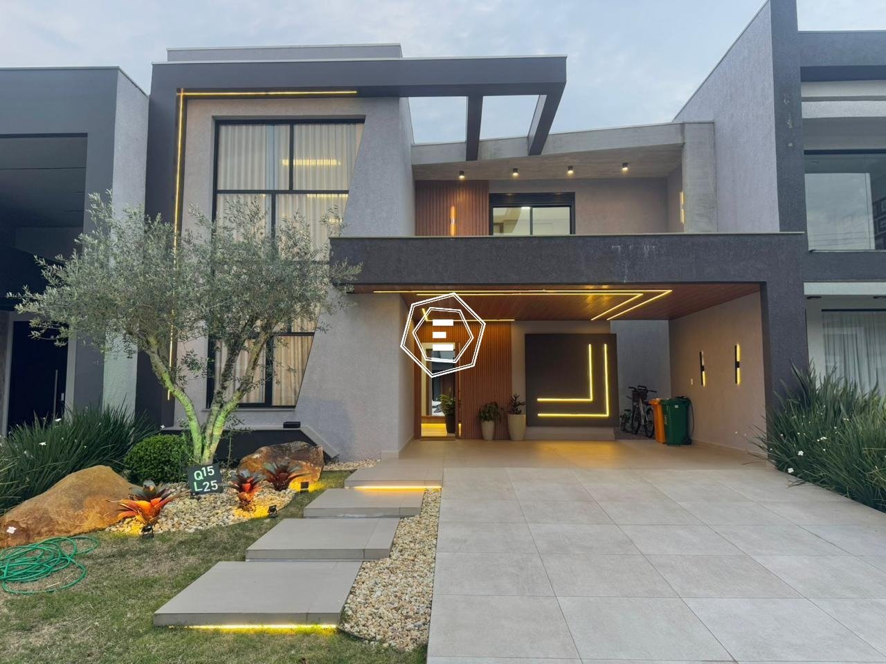 Sobrado completamente mobiliado e decorado, detalhes em concreto aparente, pé direito alto, composto por 4 suítes (sendo uma térrea), lavabo, living 3 ambientes com lareira, cozinha estilo americana com churrasqueira, piscina, área de serviço e garagem para 2 carros.
