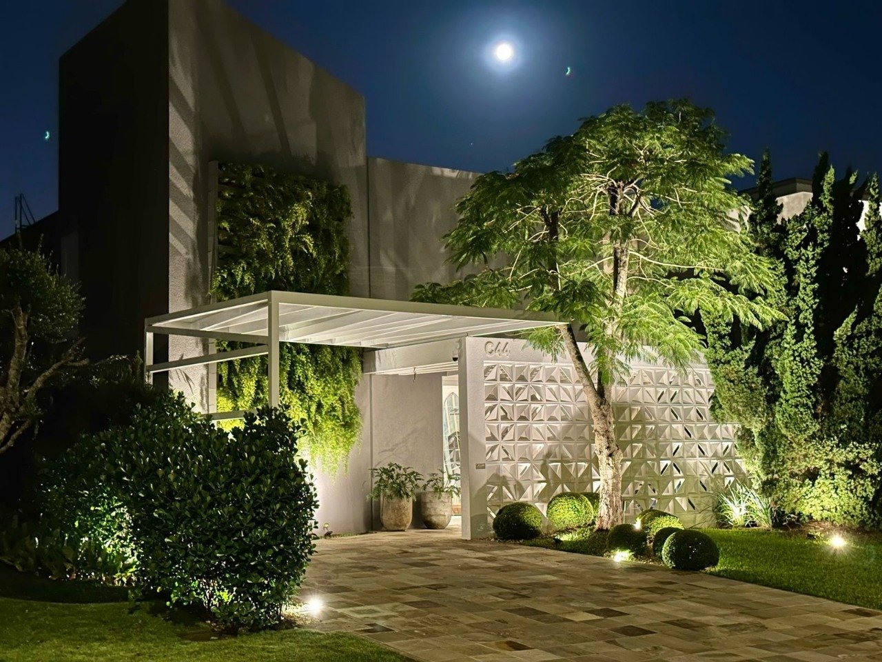 Sobrado com 400 M² 05 Suítes (sendo uma térrea e uma master com jacuzzi, com integração e vista incrível do lago) Lavabo Pé direito Duplo Mobiliado Decorado Living amplo 3 ambientes Espaço gourmet Sistema de irrigação com cisterna Energia fotovoltaica Piscina com raia de natação, aquecimento solar e hidro Jardim com vegetação imponente com Flamboyant em cada face gerando sombra natural Ventilação cruzada Privacidade ímpar com aberturas protegidas por vegetação, cobogos e muros verdes Elevador Piso aquecido Terraço coberto tipo Solarium Som ambiente na área social