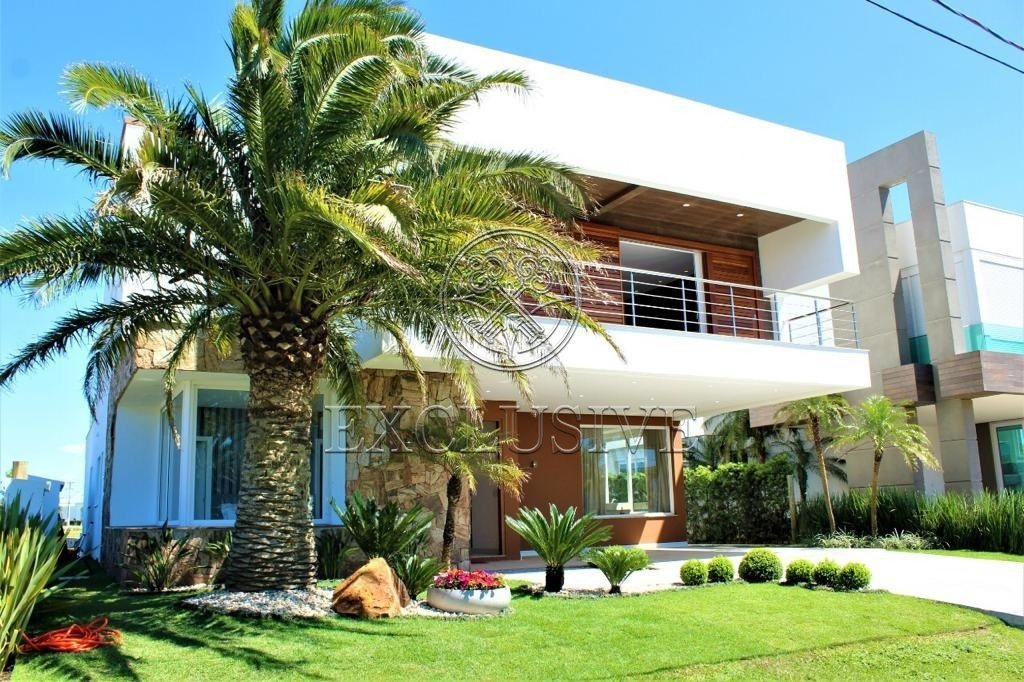 Residência contemporânea na praia de Xangri-lá. Construção de alto padrão, composta por cinco suítes sendo uma suíte térrea, amplo living quatro ambientes com pé direito elevado, espaço gourmet integrado, com churrasqueira rotativa, grelha, bifeteira e chopeira instaladas de frente para a piscina. Adega climatizada, com espaço para mais de 100 garrafas, lareira, lavabo, varanda e terraço com vista para o lago e para o Clube do Condomínio. Ampla piscina de concreto com borda infinita e hidromassagem, área de serviços e vaga para até quatro veículos.