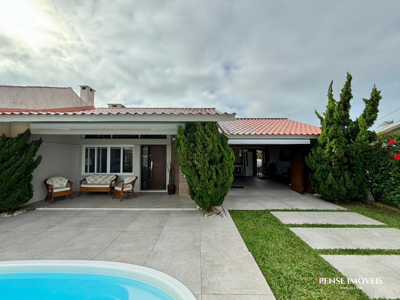 Casa no centro de Xangri-Lá, com 03 dormitórios, 02 suítes, anexo com 01 dormitório, banheiro completo, depósito, mobiliada, piscina aquecida.