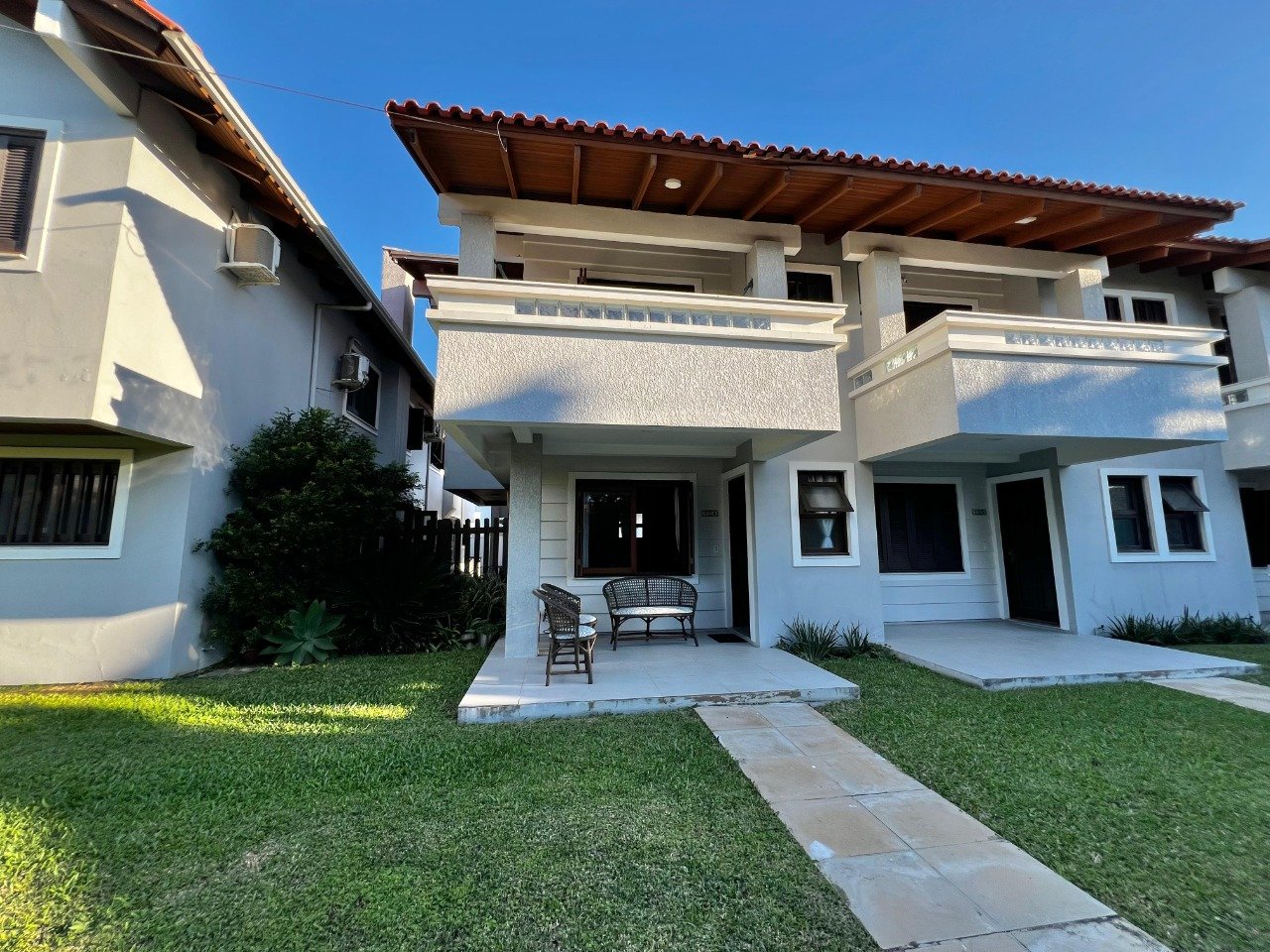 Duplex mobiliado de frente para área verde no centro. - 03 dormitórios, sendo 01 suíte; - Lavabo; - Living integrando 02 ambientes; - Cozinha equipada; - Churrasqueira; - Área de serviço; - Ar-condicionado; - Pátio na frente.