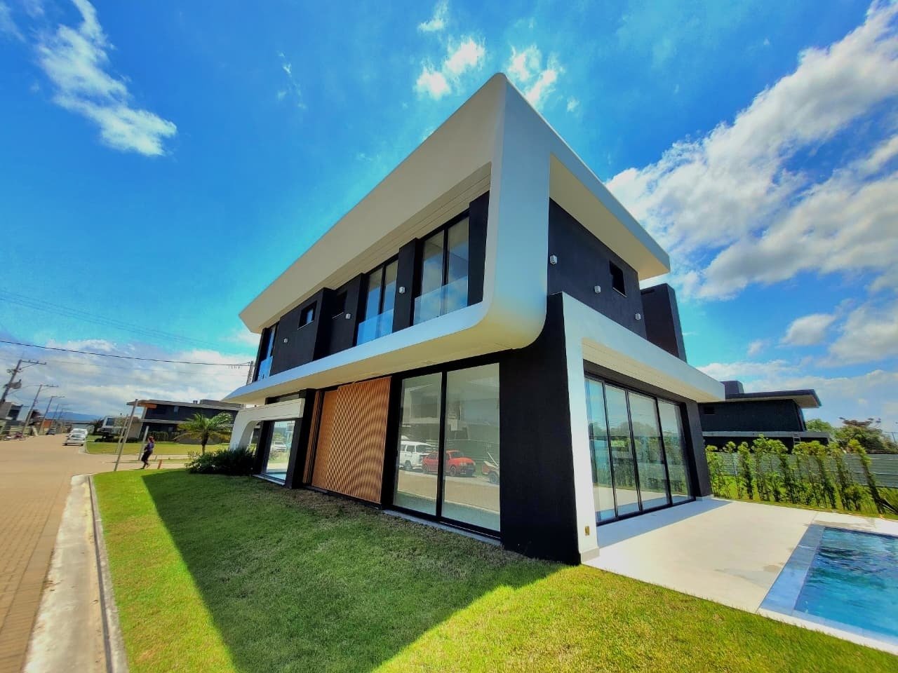 Excelente sobrado em condomínio com toda a infraestrutura. Possui 5 suítes, sala totalmente integrada com espaço gourmet e área externa da piscina, lavabo, dependência completa de empregada e amplo terraço com possibilidade de ampliação da área.