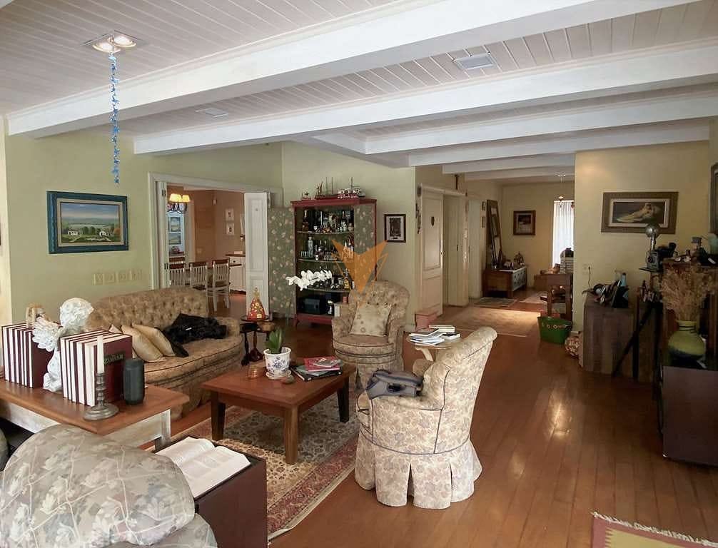 Código do Imóvel: CM931040-38. Lindo projeto do renomado Arquiteto Sig Bergamin, estilo Colonial Americano. - Casa muito bem construída, com acabamentos primorosos. - Envidraçada, arejada e bem iluminada. - Imóvel repleto de armários de marcenaria artesanal. - Portas emolduradas e janelas em madeira. - Louças e metais de qualidade. - Pisos em mármore, tábuas largas, ladrilho hidráulico, cerâmica, paralelepípedo, cimento, tijolos, ardósia e decks. - Telhas de concreto. - 3 entradas: social, lazer e serviço. - Hall de entrada social e de distribuição, dando acesso ao living, adega, área íntima e área de serviço. - Lavabo. - Escada de acesso para área íntima e adega, revestida de madeira com corrimão de madeira. - Adega grande no subsolo. - 2 Halls íntimos no piso superior, um com acesso pela área social e outro com roupeiro pela área de serviço. - Family Room ideal para home theater. - 4 suítes. Aptos completos com closets repletos de armários, sendo 3 com saletas, 1 deles com mezanino e a máster com terraço e vista. - Banheiros com espelho, gabinetes, box de vidro e bidê. Sendo a máster com lavatório externo, 2 cubas, hidro e claraboias. - Sótão multiuso com lareira. Ótimo espaço ideal para escritório, estudo e jogos. - Living para 4 ambientes voltados para varanda cercada e grande terraço panorâmico para quintal com lazer e jardim. - Salas de estar, lareira com frontão em Pinho de Riga, TV, bar e jantar mais reservada, voltada para outra varanda e quintal. - Espaço gourmet integrado à sala de jantar e cozinha, com teto em vidro, quebra sol e ladrilho hidráulico. Com churrasqueira, forno de pizza, bancada em sylestone. Pia, balcão, gabinetes e parede em lambril em Pinho de Riga. - Quiosque externo no pátio com pia, para dar suporte em festas. - Piscina de alvenaria (10m x 5m com 1,80