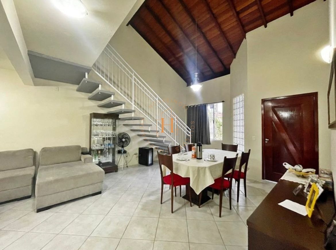 Casa três dormitórios (sendo um deles com sacada), sala ampla dois ambientes, pé direito alto, cozinha com móveis planejados, lavabo, área de serviço, banheiro na parte superior, quintal com gramado na frente, lateral e fundos, vaga para até 4 carros. Confira esta e outras opções e não deixe de nos procurar para obter sua consultoria personalizada. Contamos com uma equipe experiente e qualificada, especializada em buscar oportunidades por toda a grande Florianópolis. Estamos de plantão 24 horas e dispostos a encontrar a melhor opção para atender a sua expectativa. Visite nossas redes sociais e se atualize sobre o mercado imobiliário.