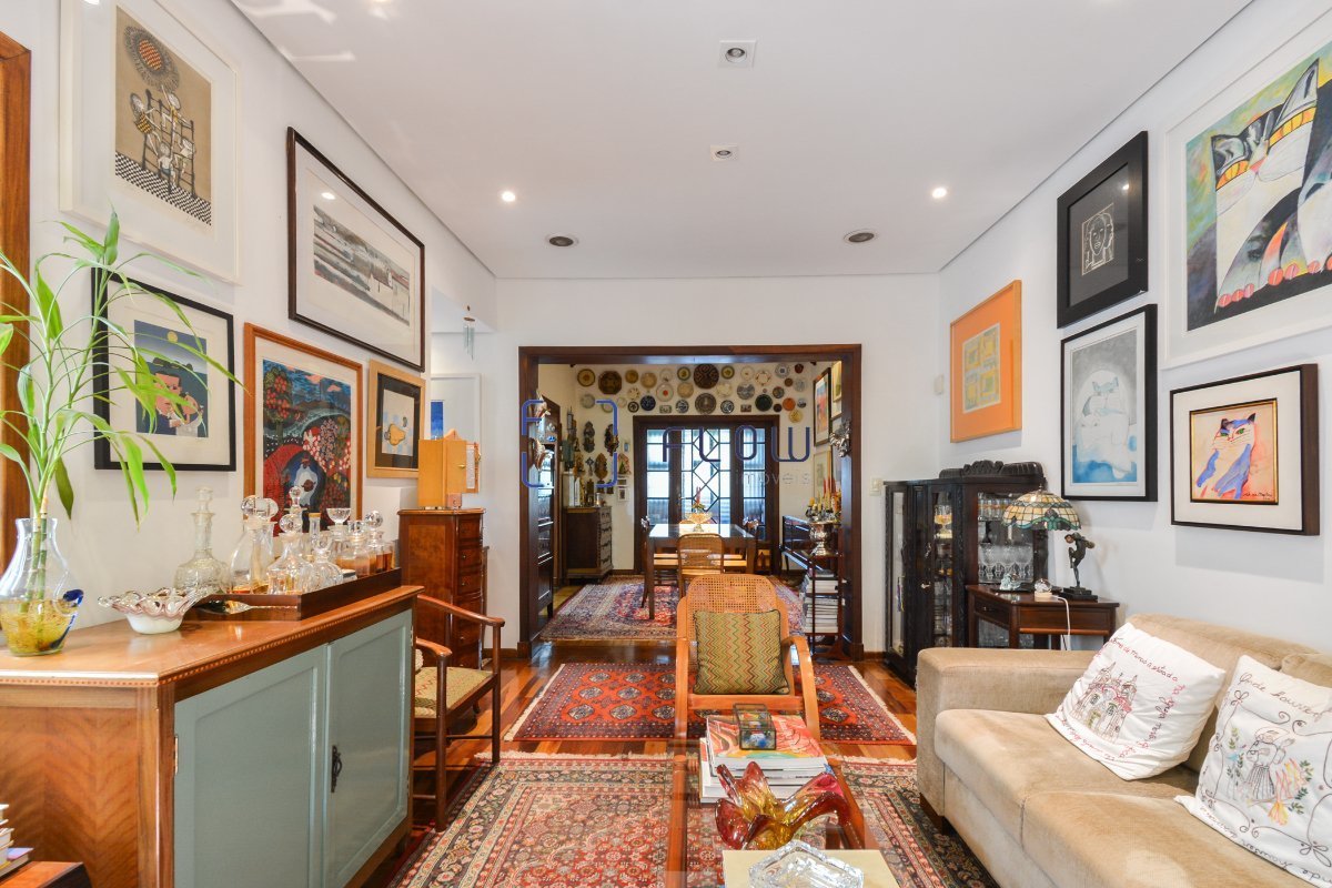 SÃO 420M² DISTRIBUÍDOS EM 2 ANDARES COM 3 SUÍTES, ALÉM DE ESCRITÓRIO NA EDÍCULA E ESPAÇO GOURMET. A casa se apresenta recuada em relação à rua, com espaço para dois carros. Pelo corredor lateral, acessamos a entrada principal. O piso de ladrilho hidráulico, os jardins verticais e o banco de madeira formam uma recepção charmosa e acolhedora. Ao entrar, encontramos a integração entre sala de jantar e sala de estar. De um lado, o quintal chama o olhar; do outro, vigas de madeira originais destacam a arquitetura do sobrado. A sala de estar é ampla, bem iluminada e conta com piso de madeira que reforça a atmosfera aconchegante. Seguindo em direção aos fundos, há uma sacada deliciosa. Mas antes, passando pela sala de jantar, chegamos à cozinha integrada. A cozinha, com bela ilha central e armários em abundância, é funcional e cheia de estilo. Sob a escada, uma despensa bem aproveitada reforça a praticidade do ambiente. Na lateral, um lavabo complementa o espaço com discrição. Voltando à sala de jantar, as portas-balcão de madeira e vidro levam a uma sala de TV íntima. Por fim, a escada de madeira original, totalmente restaurada, arremata o charme da casa, unindo passado e presente com elegância. No piso superior, uma primeira suíte, voltada para a frente, funciona perfeitamente como quarto de visitas. Além disso, ela conta com uma charmosa varanda com vista para as casas da rua. Voltada para os fundos, a suíte principal é um espetáculo de ambiente! O quarto é extremamente espaçoso e se abre para um belo terraço através de elegantes portas-balcão de madeira. Na sequência, um bom closet atende às necessidades do dia a dia. Banheiro amplo, com banheira de hidromassagem. No terraço, uma mesa com cadeiras transforma o espaço no cenário ideal para um café da manhã ao ar livre. Por ele, acessamos uma suíte adicional, que fica separada do corpo principal da casa. Essa suíte também oferece um closet e um banheiro confortável. Além disso, é possível chegar a esse terraço pelo hall de entrada, no piso inferior, por meio de uma charmosa escada helicoidal de concreto. Vale