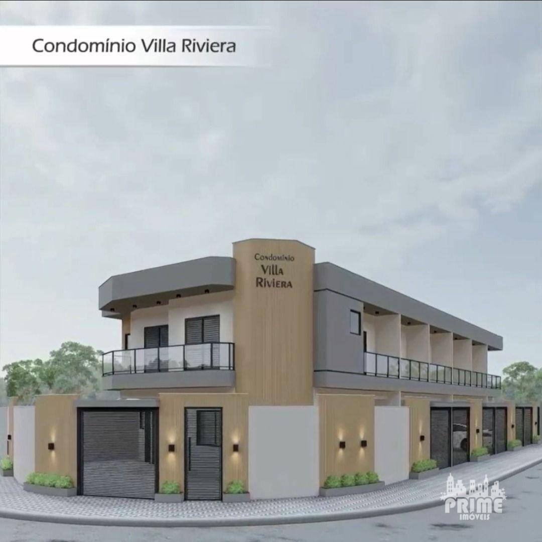 Sobrado novo em condomínio Vila Caiçara, Praia Grande/SP. Sobrado individual em construção, com entrega prevista para dezembro de 2025. Possui 2 quartos, lavabo, sala, cozinha e 1 vaga de garagem, próximo à praia e ao comércio local.