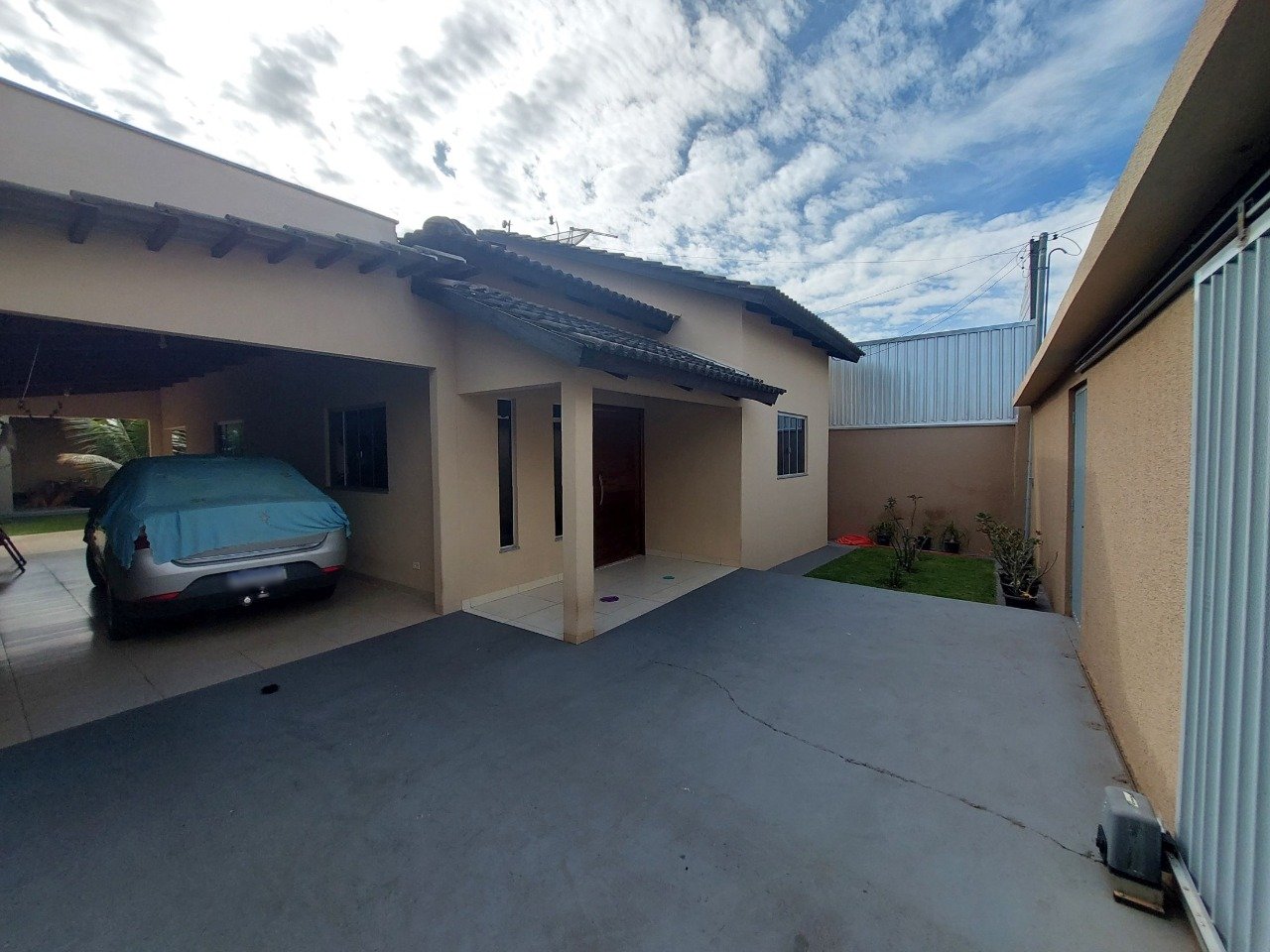 Casa à venda em Mineiros GO com três quartos, sendo um suíte, sala, cozinha, banheiro social, área de serviço, garagem coberta, edícula com varanda gourmet, banheiro e quarto de visitas, e despensa. Acabamento em cerâmica e forrada. Possui espaço externo com jardim, localizada próxima ao shopping e do Clube Hípica.