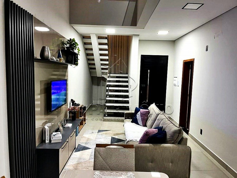 Excelente sobrado com 164m² de área construída, pé direito alto, sala de estar e jantar, lavabo, cozinha planejada com cooktop, coifa e forno, despensa, banheiro social, área gourmet com churrasqueira, armários, piscina já preparada para aquecimento, corredor lateral e no piso superior são 3 dormitórios, sendo 2 com closet e 1 suíte com sacada, 4 vagas, sendo 2 cobertas. Condomínio com portaria 24 horas, playground, salão de festa, campo de futebol e quadra poliesportiva. Agende sua visita!