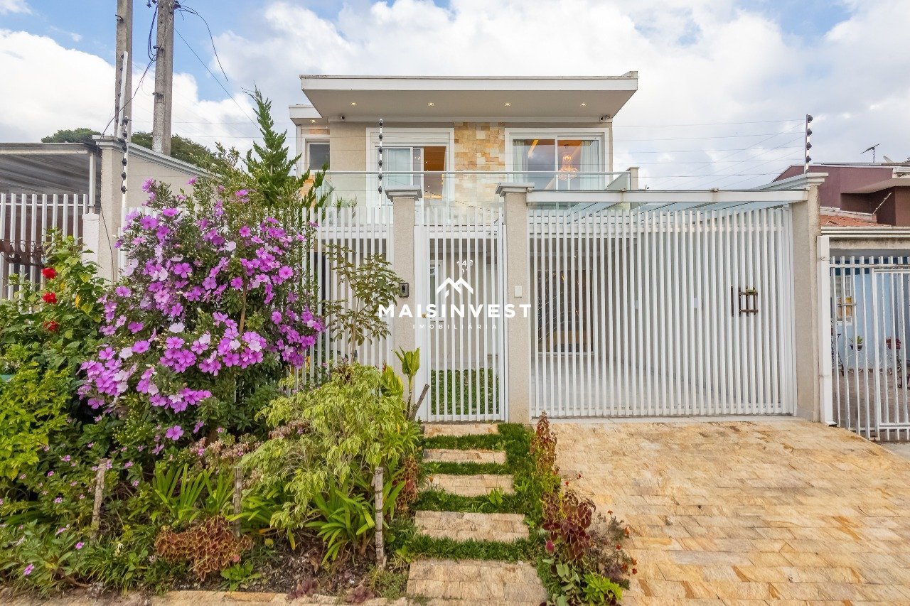 O sobrado mais lindo de Colombo está aqui! Este é o melhor sobrado da cidade em qualidade e acabamento e você pode comprovar. Com 180 m² construídos, o imóvel possui o mais elevado conceito e proporciona o estilo de vida perfeito ambientando área de lazer e tranquilidade aos seus moradores. Localizado em rua de pouco movimento e com vista definitiva para mata de preservação permanente, sua suíte master está voltada para a copa das árvores do bosque para o qual confronta nos fundos. Composição do imóvel: Pavimento Térreo: 2 vagas de garagem, sendo 1 coberta sob vidro temperado. Sala de Estar com iluminação projetada e decorada com painéis de alta qualidade. 2 quartos térreos, sendo um multiversátil. WC térreo decorado. Cozinha completa com eletrodomésticos, torre quente e mobiliário de alta qualidade. Churrasqueira à carvão vegetal. Piscina aquecida e iluminada com cascata e decoração. Área de descanso. Área de serviços. Segundo Pavimento: Sala de TV com acesso à sacada de fundos. Bar com acesso à sacada frontal. Suíte júnior mobiliada e decorada com iluminação projetada e persiana automatizada. Suíte master mobiliada, decorada, com closet alto luxo iluminado, persiana automatizada, wc da suíte com cubas duplas e aquecimento à gás. Sacada com vista para o bosque. Câmeras de monitoramento, cerca elétrica e alta segurança, além de estar localizado em região residencial e de boa infraestrutura, transmitindo boa sensação de segurança e bem estar. Agende a sua visita, esta maravilha pode ser sua.