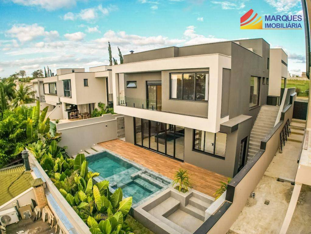 Magnífica casa dos sonhos com 03 suítes, sendo a master com closet, escritório, lavabo, copa no andar das suítes, gourmet com cooktop, forno, micro-ondas e coifa, sala de estar e jantar integradas, sala de TV, churrasqueira com interior em inox e motor para espetos, principais ambientes com ar condicionado instalado, piscina com cascata, fonte, hidro e aquecimento, lareira, banheiro para área de piscina, esquadrias automatizadas nas suítes, louças e metais de alto padrão, pisos e revestimentos de alto padrão, fachada com painel ripado em madeira e revestimento cimentício, 02 vagas de garagem coberta e 2 descobertas, aquecedor solar, boiler 500L, preparação para energia fotovoltaica, circuito de tomadas bifásico, móveis planejados em diversos ambientes e paisagismo tropical. Agende uma visita!