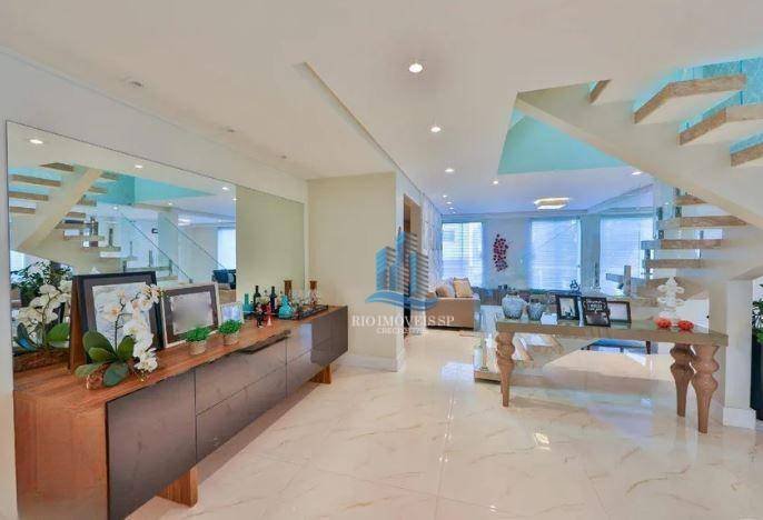 Código do Imóvel: CM1699395-6 Sobrado com 5 dormitórios à venda, 502 m². Se você está em busca de um imóvel de alto padrão em um bairro nobre, com acabamento impecável e pronto para morar, seu novo lar está aqui! Este sofisticado sobrado foi completamente reformado há pouco mais de 2 anos e oferece um nível de acabamento que combina elegância e funcionalidade, sem necessidade de reformas. O imóvel está à venda porteira fechada. Destaques do Imóvel: Área Construída: 502 m² Dormitórios: 5 (incluindo 4 suítes planejadas e 1 suíte master com closet e hidromassagem dupla) Banheiros: 7 Vagas de Garagem: 7 Características Exclusivas: Acabamentos de Primeira Linha: Silestone, Dekton, inox, vidros temperados, persianas. Ambientes Arejados e Iluminados: Living em 3 ambientes (estar, jantar e home bar) com pé-direito alto e jardim de inverno. Projeto de Interior Premium: Entradas multifuncionais (serviço, social e de festas), escadas em travertino, solarium no terraço. Espaço Gourmet: Cozinha em ilha planejada e equipada, espaço gourmet integrado com quintal. Lazer e Conforto: Piscina com cascata e sistema de aquecimento, quiosque e churrasqueira, paisagismo exuberante. Áreas Adicionais: Sala de Cinema: Totalmente equipada. Terceiro Nível: Studio em vidro, atualmente utilizado como academia, com potencial para diversas finalidades. Dependências: Dependência de empregada completa, depósito, casa de máquinas, 2 lavanderias, cozinha de apoio na área de garagem. Conforto Moderno: Climatização: Ambientes climatizados com ar condicionado e sistema de aquecimento central. Este sobrado é um verdadeiro sonho, pensado com o maior capricho para oferecer conforto e sofisticação a você e sua família. Não perca a chance de viver em um imóvel que combina beleza, funcionalidade e um excelente padrão de qualidade.