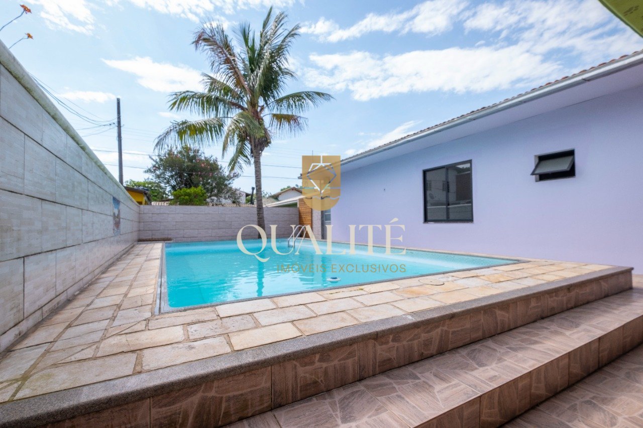 Encante-se com esta ampla casa térrea, totalmente reformada e modernizada, localizada em uma região estratégica que une vida de bairro, conforto e comodidade urbana. Uma casa pensada para quem busca praticidade, segurança e qualidade de vida no dia a dia. São 4 dormitórios, sendo 1 suíte espaçosa, ambientes amplos, bem distribuídos e com excelente iluminação natural, graças às grandes janelas de alumínio. A área externa é um verdadeiro convite ao lazer e à convivência: churrasqueira, área gourmet, piscina, ducha externa e deck de madeira, criando o cenário ideal para receber amigos e família. Com 190 m² de área construída em um terreno de 380 m², a casa oferece conforto em todos os detalhes, aliando estética, funcionalidade e solidez construtiva. Destaques: * Casa térrea e funcional * Ambientes amplos e integráveis * Duas áreas de churrasqueira (interna e externa) * Piscina de 8 x 4 x 1,40 m, com sistema completo já instalado * Garagem para até 3 carros, sendo 1 vaga coberta e 2 descobertas * Garagem de laje e talhado com impermeabilização * Bases das paredes impermeabilizadas, prevenindo infiltrações * Elétrica 100% nova * Sistema de drenagem de águas pluviais * Apenas 1,4 km da praia * 200 metros de um supermercado * Próximo a escolas, comércio variado, ciclovia, serviços de saúde, restaurantes, academias, spa e muito mais. Grande potencial.