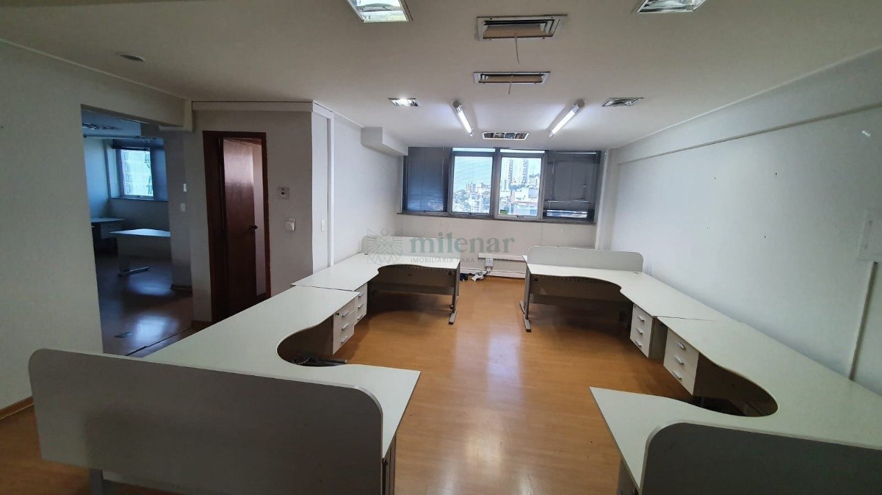 Conjunto de salas comerciais (08 salas) com 8 banheiros à Venda, com área total de 307 m² e 05 vagas de garagem, na Av. Afonso Pena no bairro Funcionários em Belo Horizonte - MG. São oito salas conjugadas, sem ocupação, com a possibilidade de manter a integração entre as salas ou individualizá-las, com 05 vagas de garagem delimitadas no 2º sub-solo, e com um banheiro para cada sala. Prédio em local tradicional da capital mineira, na parte alta da Av. Afonso Pena, com auditório, estacionamento para visitantes no andar térreo, em local bem servido por transporte público, comércio, supermercado e restaurantes, a 2,5 km do centro da cidade. Características: Prédio recuado, frente livre, porteiro, catracas de controle de portaria com biometria facial, e 4 elevadores; Imóvel claro, arejado, ótima vista e localização, ar condicionado central, corredor com fechamento em blindex; Trata-se de um prédio de excelente estrutura, ótimo acabamento, local nobre e fácil acesso; Área total de 307 m², parte do corredor fechado em blindex; Sala recepção com interfone; Salas com piso laminado, banhos com piso e bancada em granito; Vagas de garagem livres e cobertas.